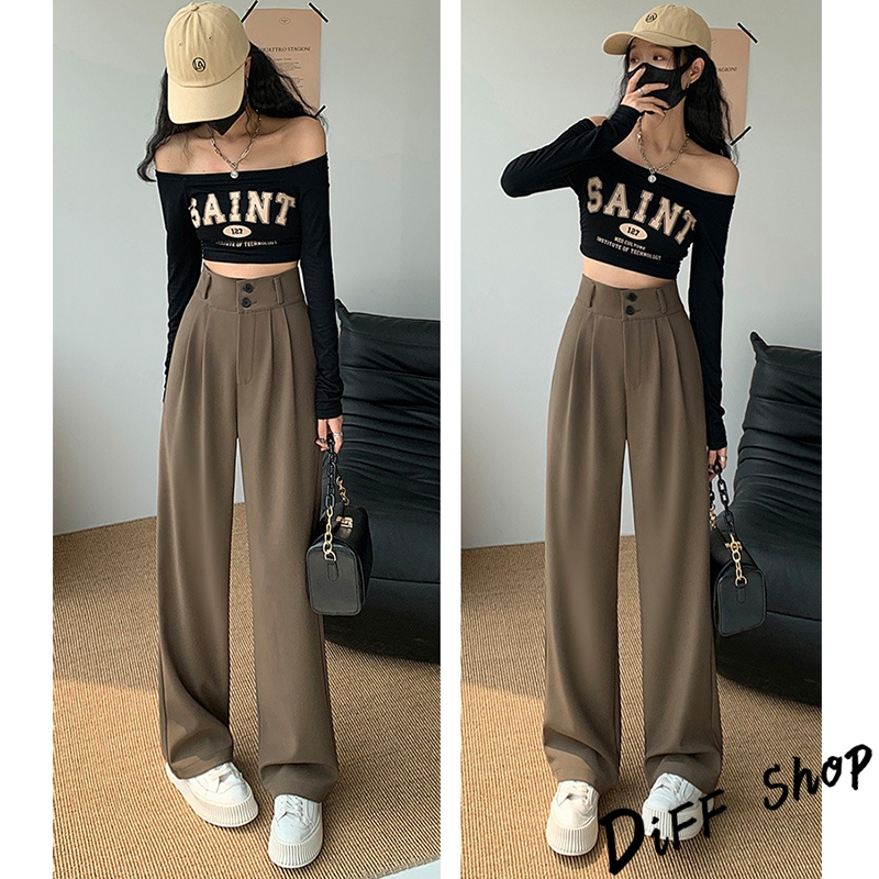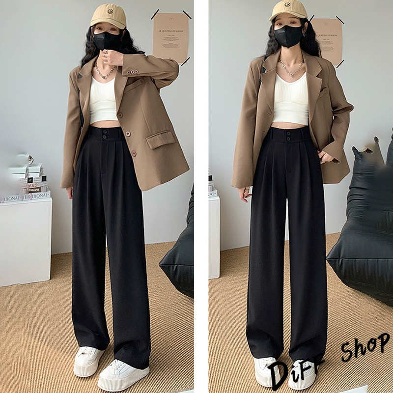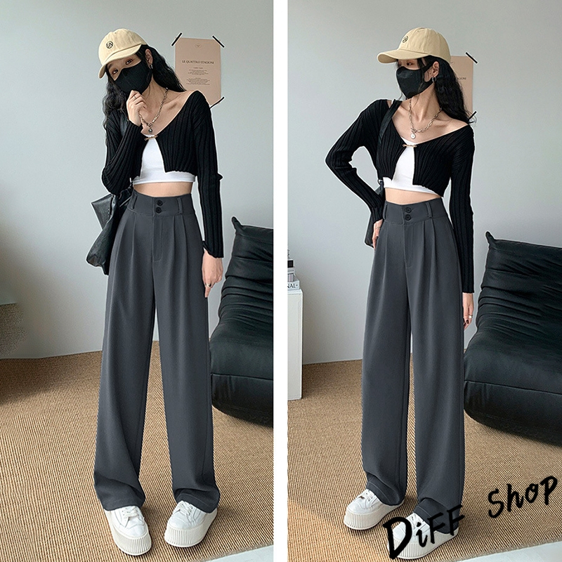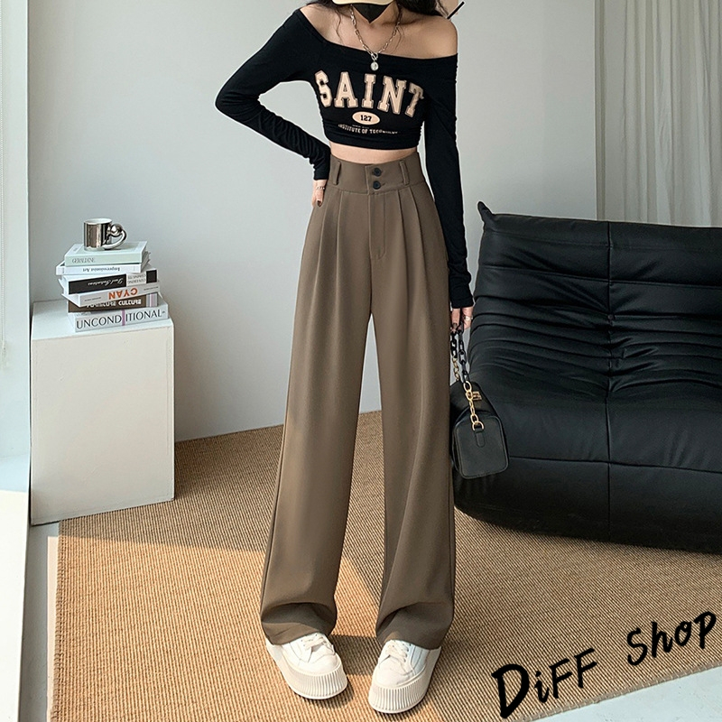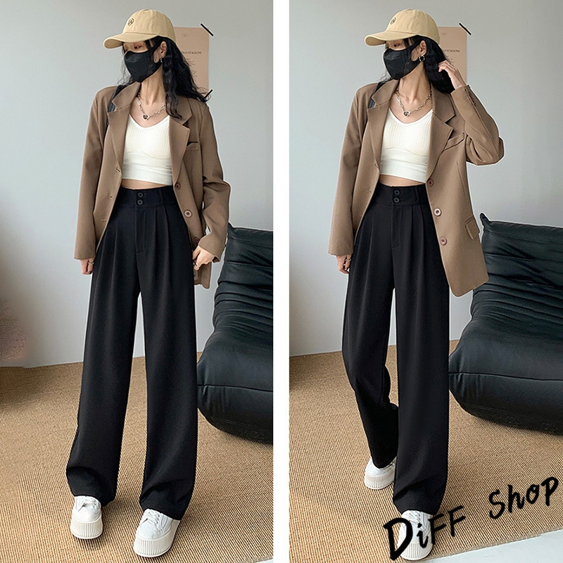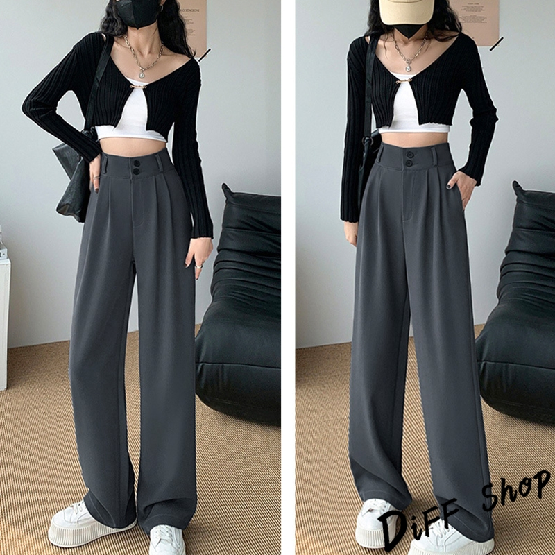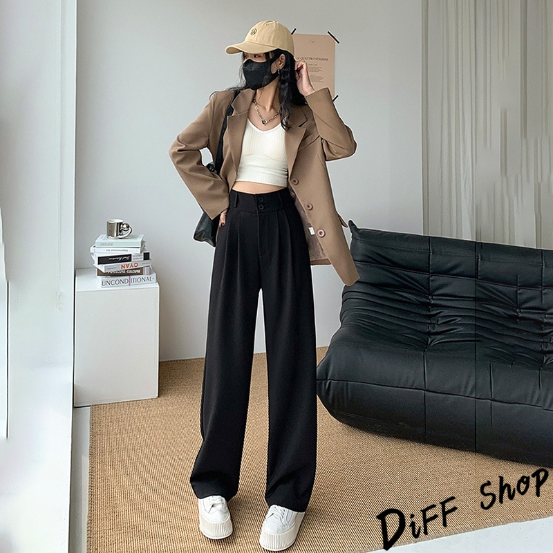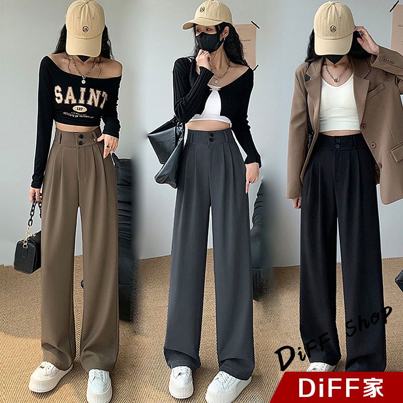 【DIFF】韓版高腰顯瘦垂感雙扣西裝褲 寬褲 褲子 長褲 休閒褲 女裝 高腰褲 拖地褲 直筒褲 黑褲【P263】【P263】黑色S號|【P263】黑色M號|【P263】黑色L號|【P263】黑色XL號|【P263】奶茶S號|【P263】奶茶M號|【P263】奶茶L號|【P263】奶茶XL號|【P263】米白S號|【P263】米白M號|【P263】米白L號|【P263】米白XL號PantsDiFF shop