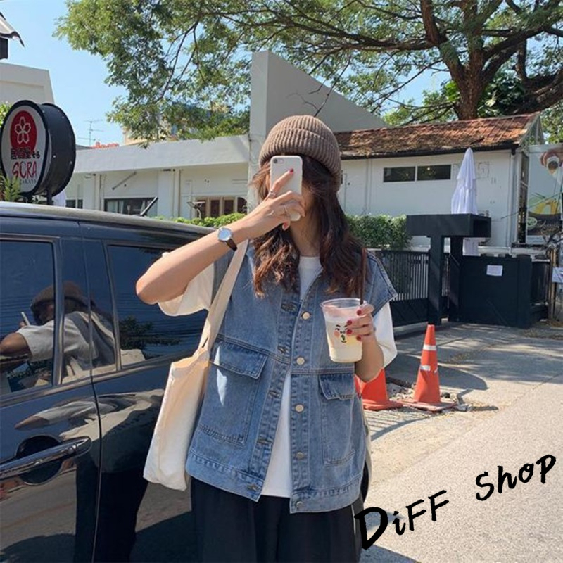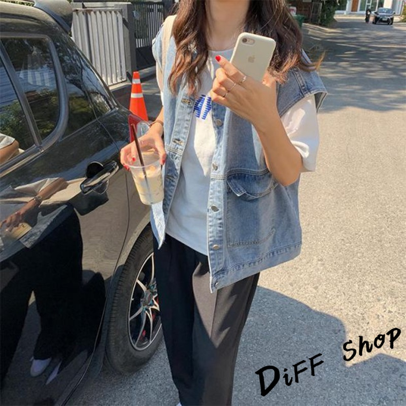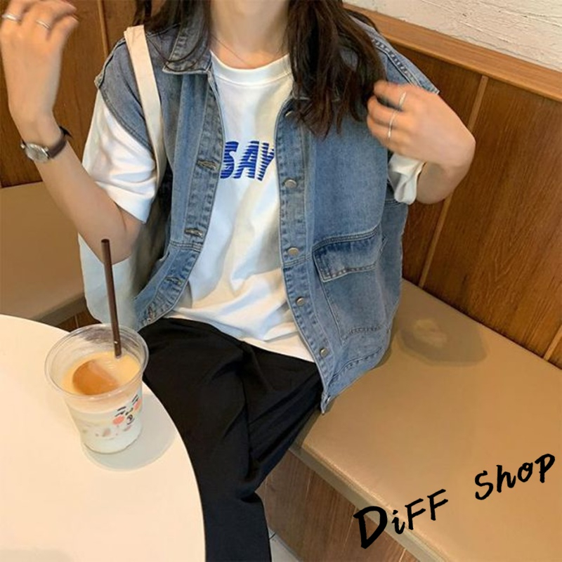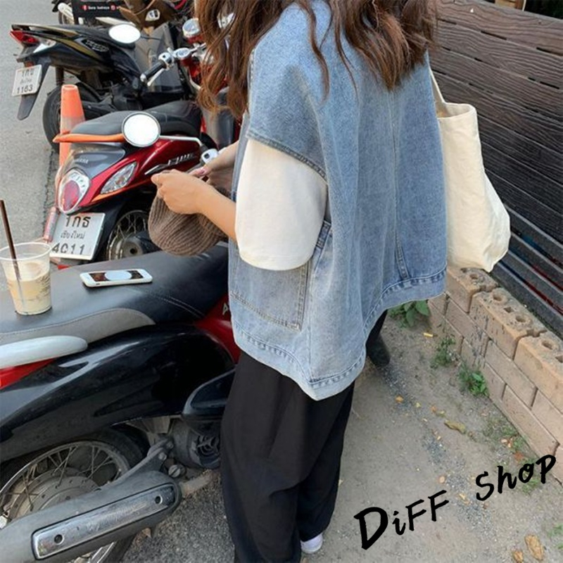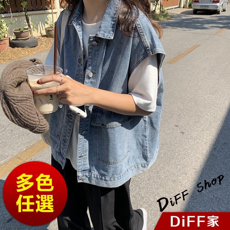 【DIFF】韓版寬鬆無袖牛仔背心 牛仔外套 上衣 女裝 衣服 外套【J124】【J124】淺藍|【J124】黑灰VestsDiFF shop