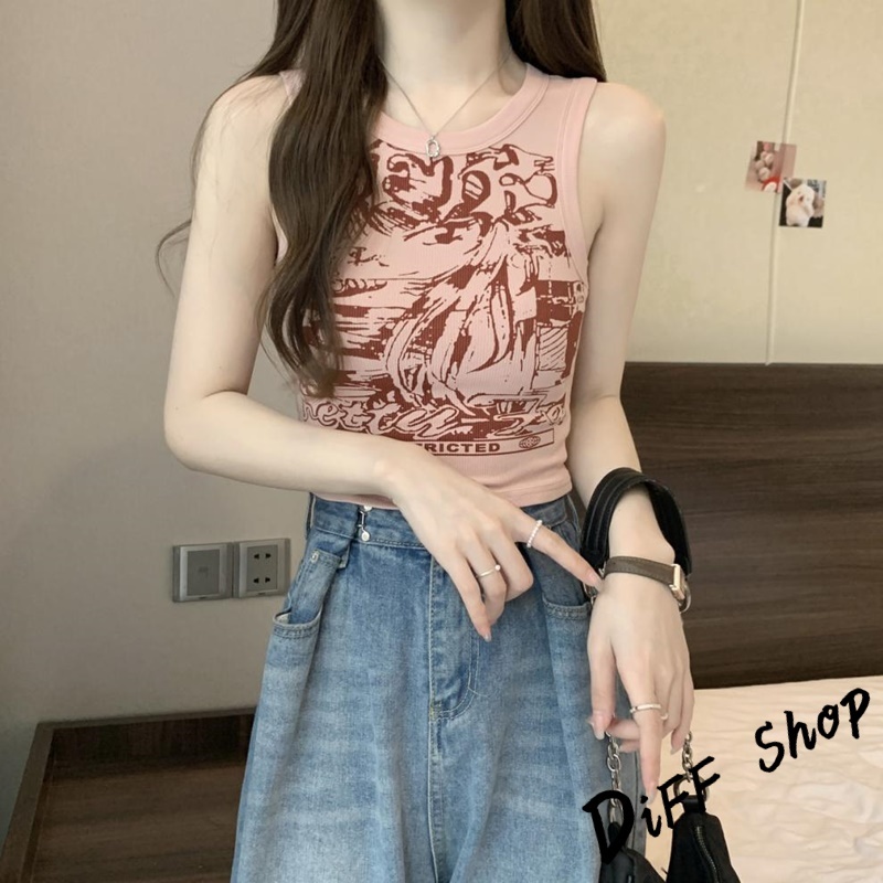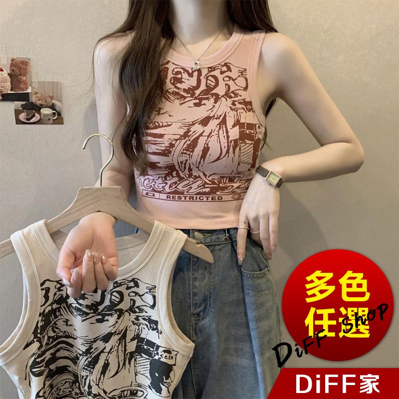 【DIFF】韓版美式復古小背心 無袖上衣 背心 小可愛 女裝 衣服 短版上衣 夏天女裝 短版背心【V401】【V401】杏色|【V401】粉色Tanks & CamisolesDiFF shop