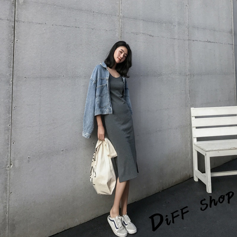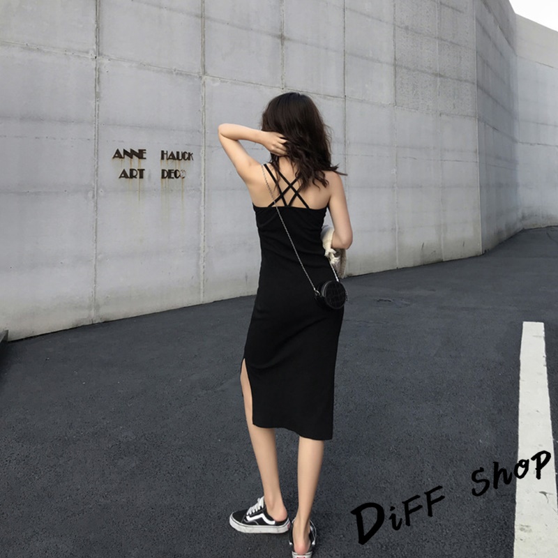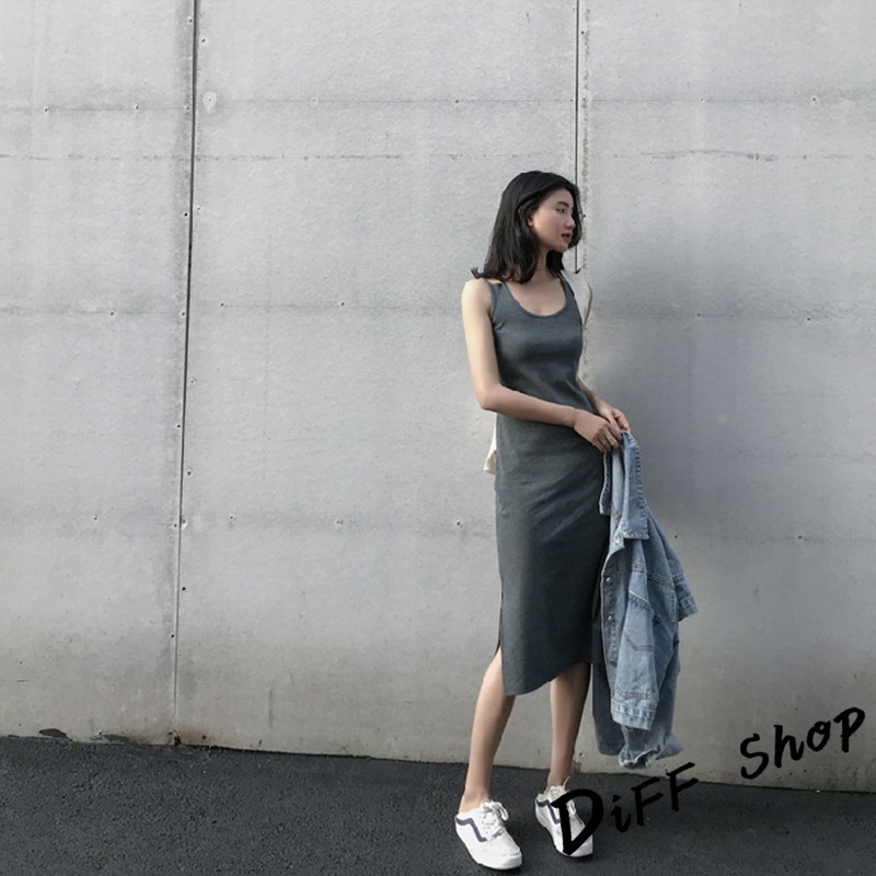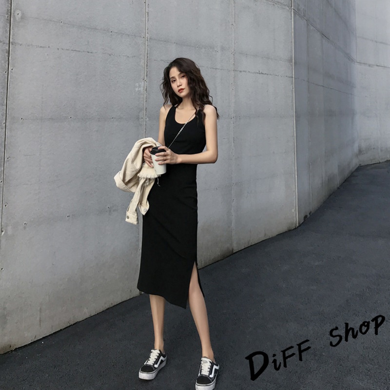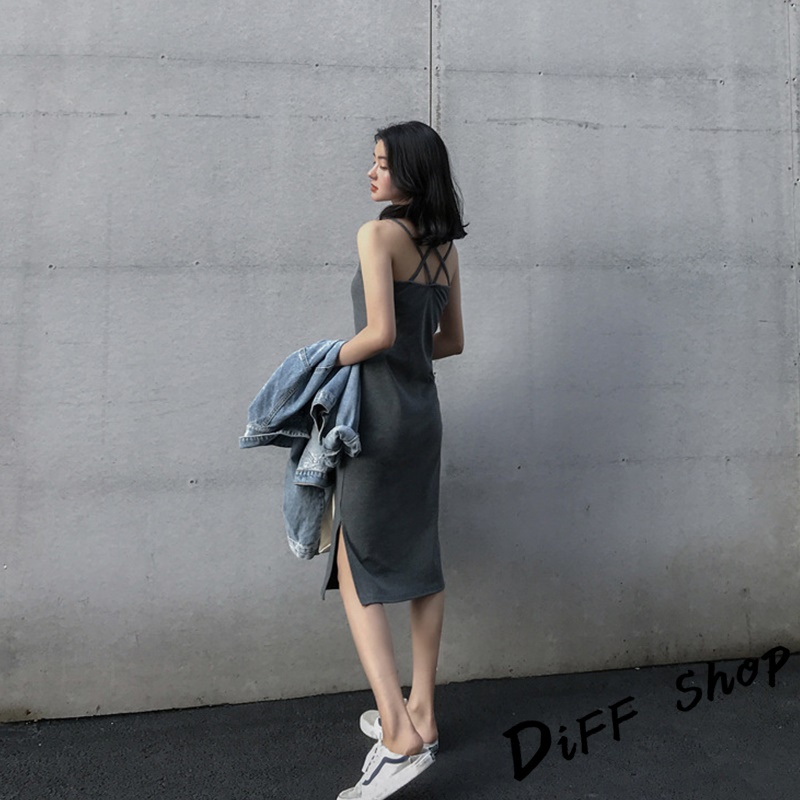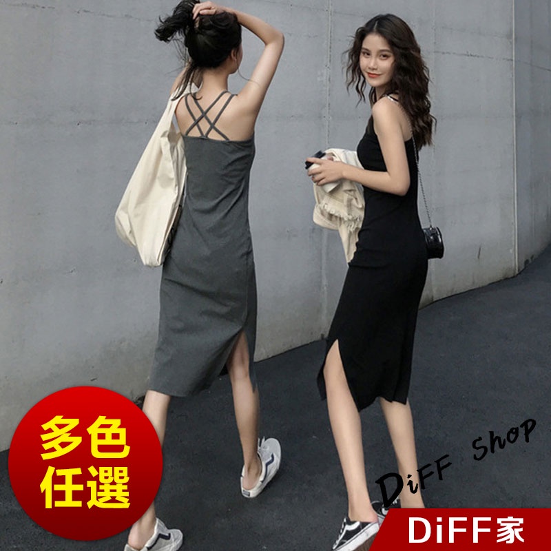 【DIFF】韓版開叉氣質顯瘦長版吊帶洋裝 連衣裙 連身裙 上衣 套裝 女裝 裙裝 短袖洋裝【S186】【S186】灰色|【S186】黑色DiFF shop