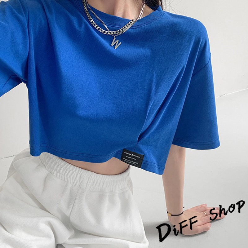 【DIFF】韓版寬鬆顯瘦素色短版上衣 短袖上衣 短袖t恤 女裝 顯瘦上衣 衣服 寬鬆上衣 素T 短板上衣【T440】【T440】深藍|【T440】淡藍|【T440】黑色|【T440】灰色|【T440】白色T-shirtsDiFF shop