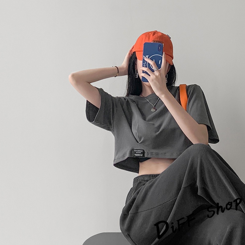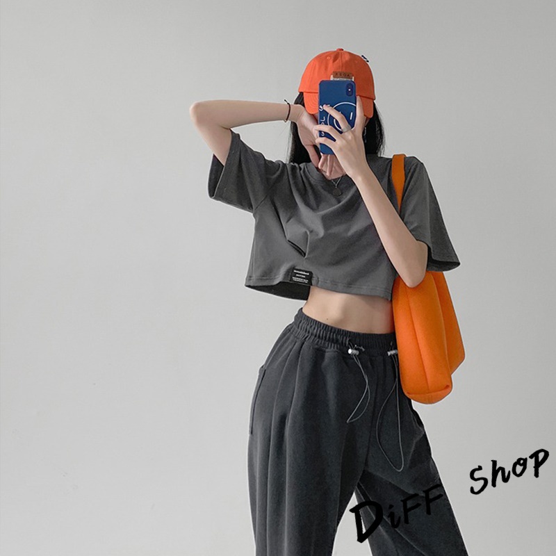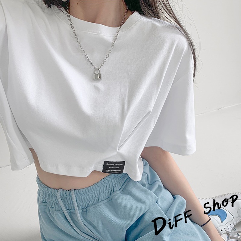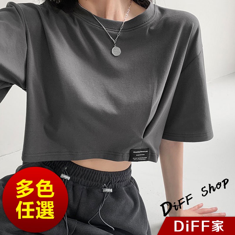 【DIFF】韓版寬鬆顯瘦素色短版上衣 短袖上衣 短袖t恤 女裝 顯瘦上衣 衣服 寬鬆上衣 素T 短板上衣【T440】