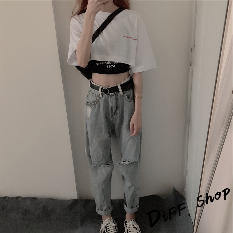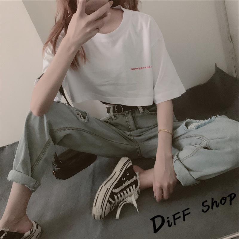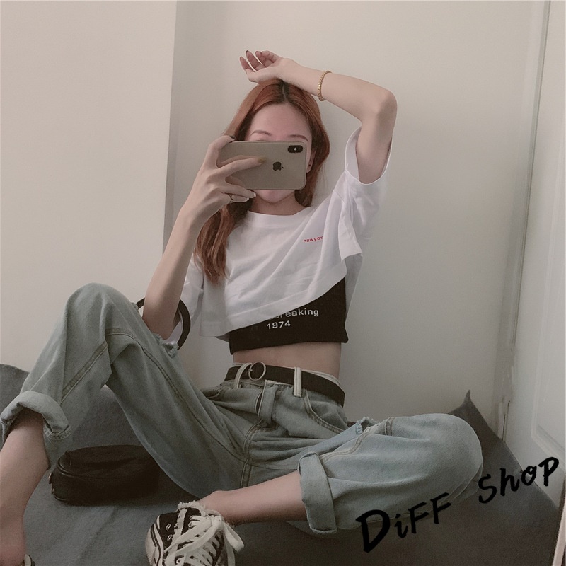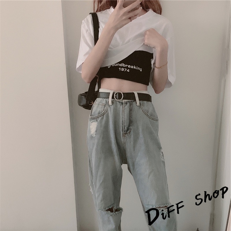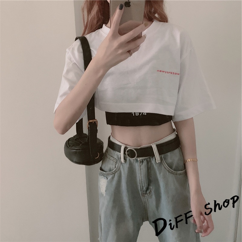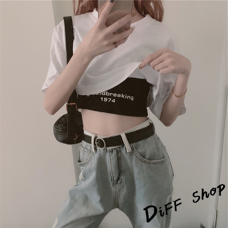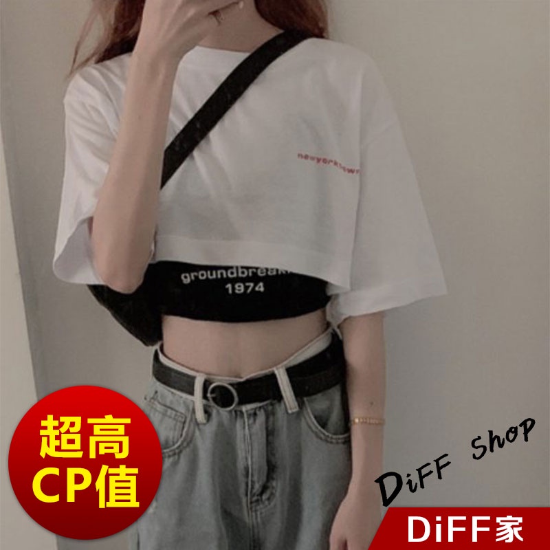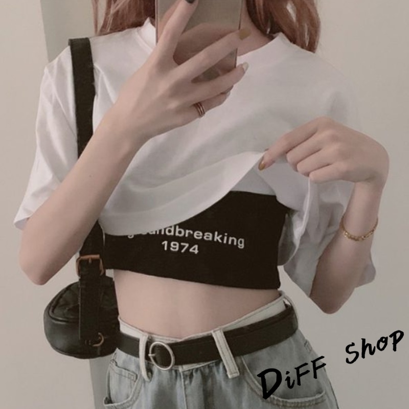 【DIFF】韓版設計感小眾字母印花短版上衣+短版背心 兩件套 套裝 短袖上衣 短袖t恤 女裝 顯瘦上衣 衣服【S81】【S81】白上衣黑背心M號|【S81】白上衣黑背心L號|【S81】白上衣黑背心XL號T-shirtsDiFF shop