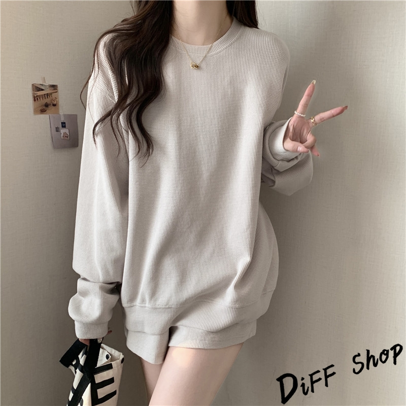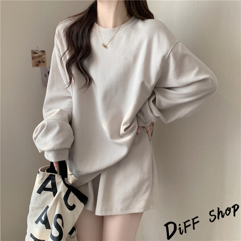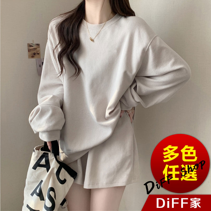 【DIFF】韓版休閒寬鬆長袖運動套裝 長袖上衣+短褲 女裝 衣服 寬鬆上衣 顯瘦上衣 長袖t恤 褲子 運動褲【S281】