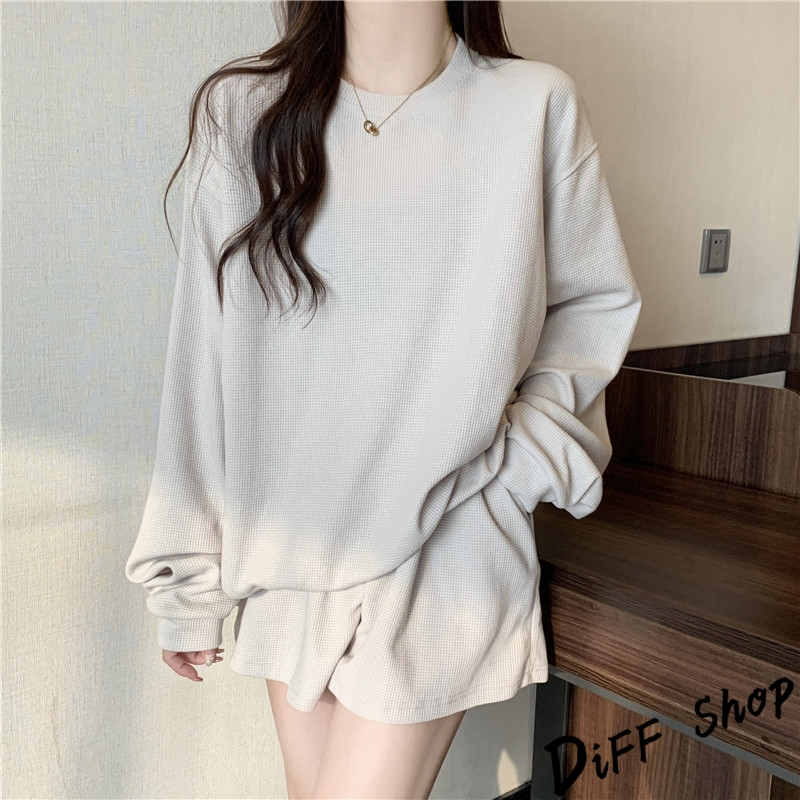【DIFF】韓版休閒寬鬆長袖運動套裝 長袖上衣+短褲 女裝 衣服 寬鬆上衣 顯瘦上衣 長袖t恤 褲子 運動褲【S281】【S281】杏色Individual SetsDiFF shop