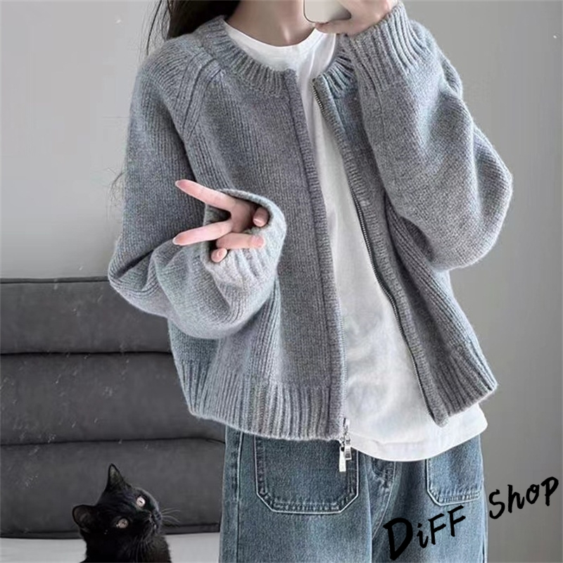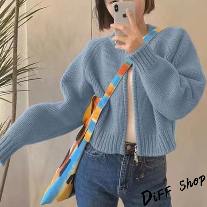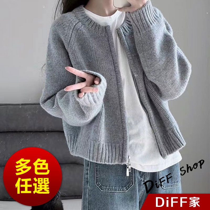 【DIFF】韓版寬鬆顯瘦拉鍊針織外套 上衣 女裝 衣服 外套 長袖上衣 針織上衣 寬鬆上衣 顯瘦上衣【J286】【J286】天藍色|【J286】粉色|【J286】灰色|【J286】米白色|【J286】黑色|【J286】橘色DiFF shop