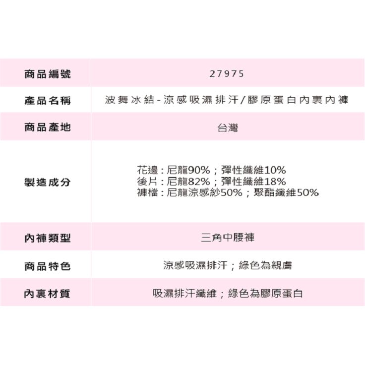 凱沃 慕思爾 Choy’s Dream 巧衣織夢 波舞冰結 涼感吸濕排汗/膠原蛋白內裏內褲 M L 親膚涼感 MIT粉,M|粉,L|綠,M|綠,LPantiesChoy’s Dream 巧衣織夢內衣-慕思爾內衣&凱沃內衣專賣