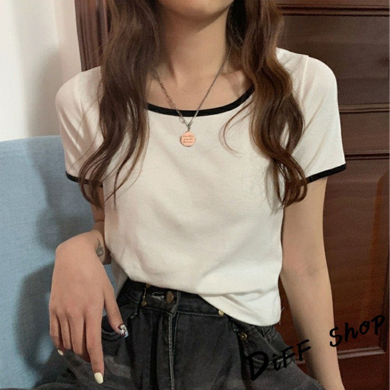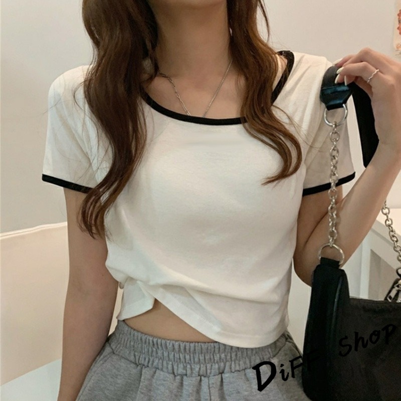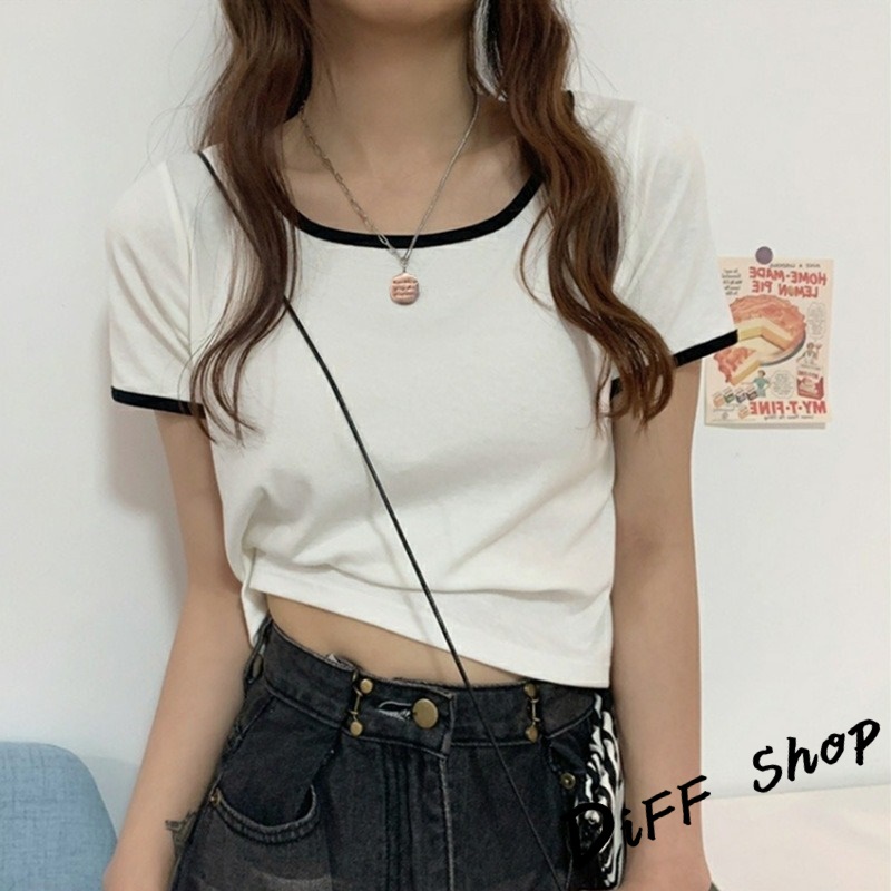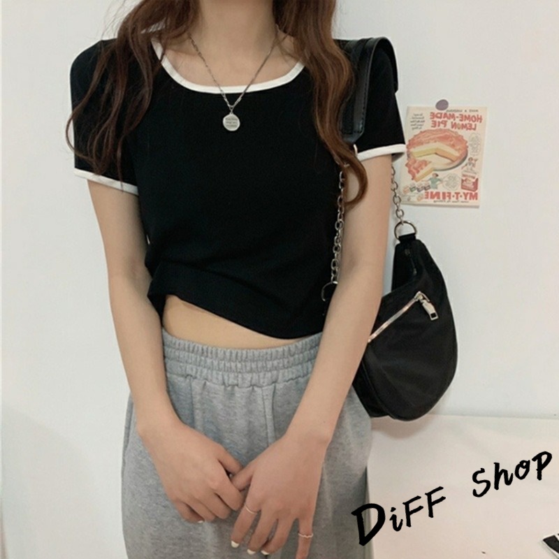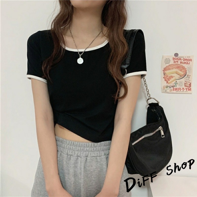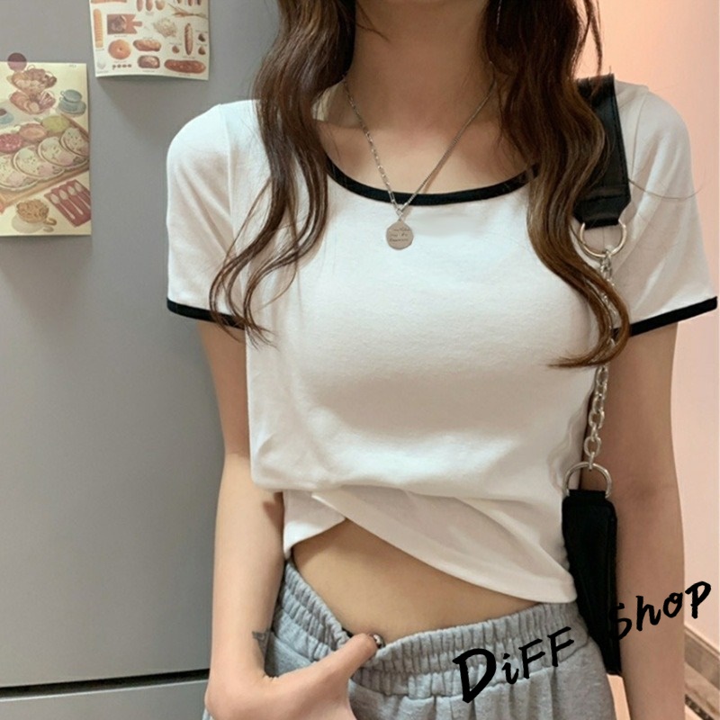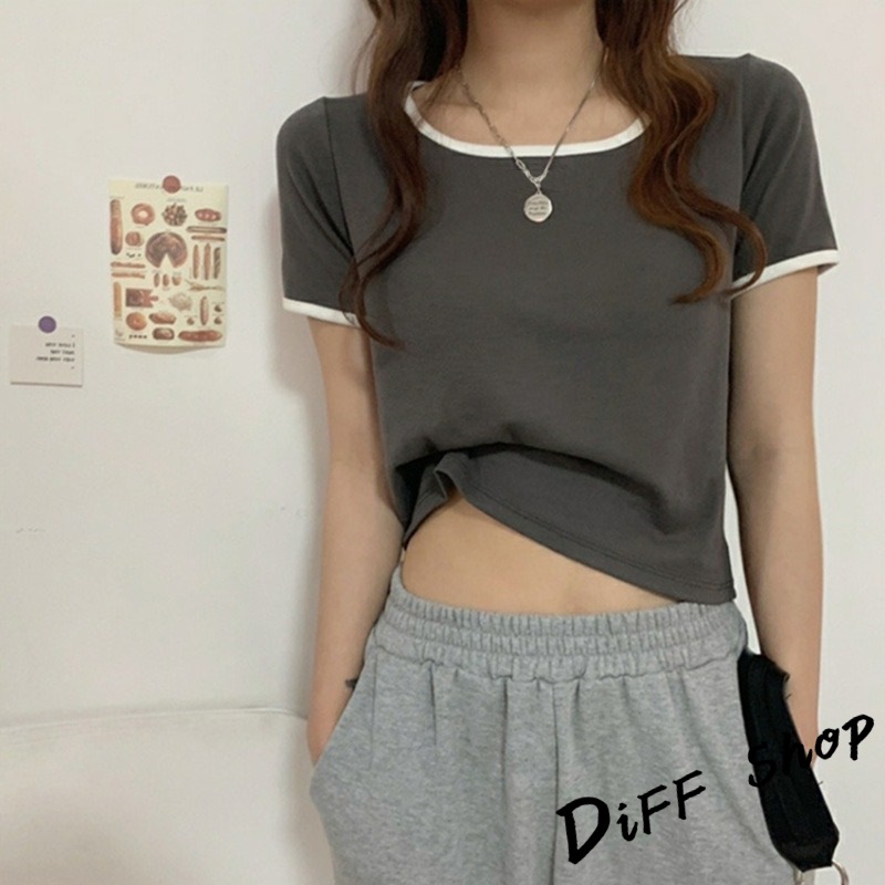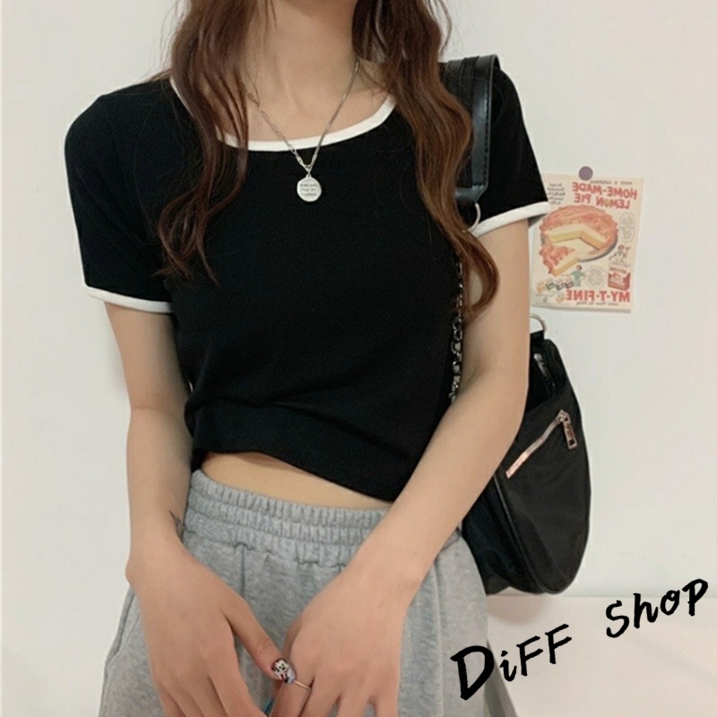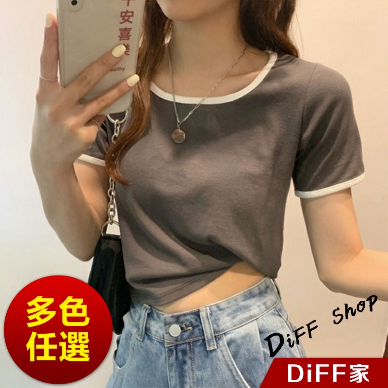 【DIFF】 韓版小心機撞色短版上衣 短袖上衣 短袖t恤 女裝 顯瘦上衣 衣服 寬鬆上衣 素T 短板上衣【T396】【T396】黑色|【T396】灰色|【T396】白色T-shirtsDiFF shop