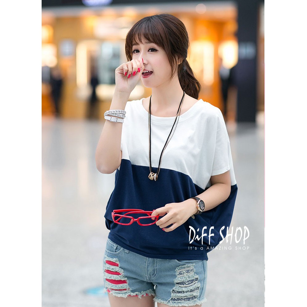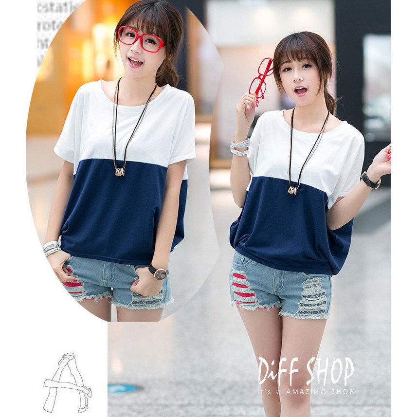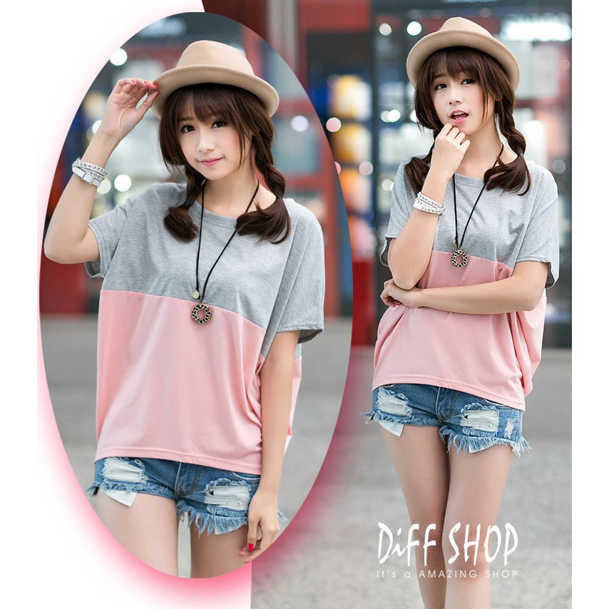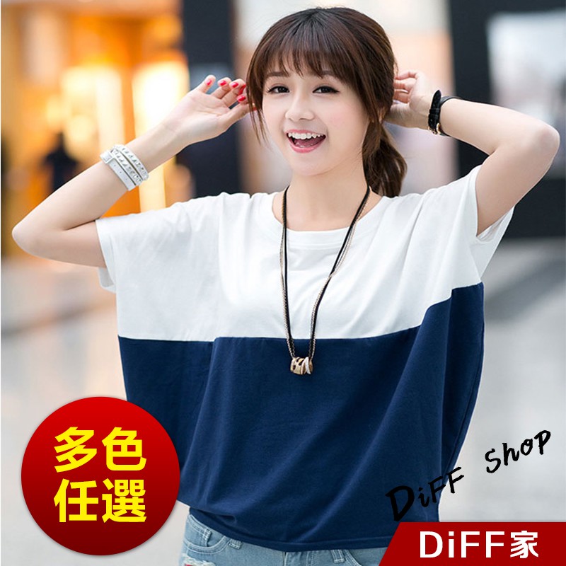 【DIFF】夏季韓版寬鬆拼接色短袖T恤 短袖 素T 短袖上衣 女裝 素T 衣服【T109】【T109】藍色|【T109】粉色T-shirtsDiFF shop