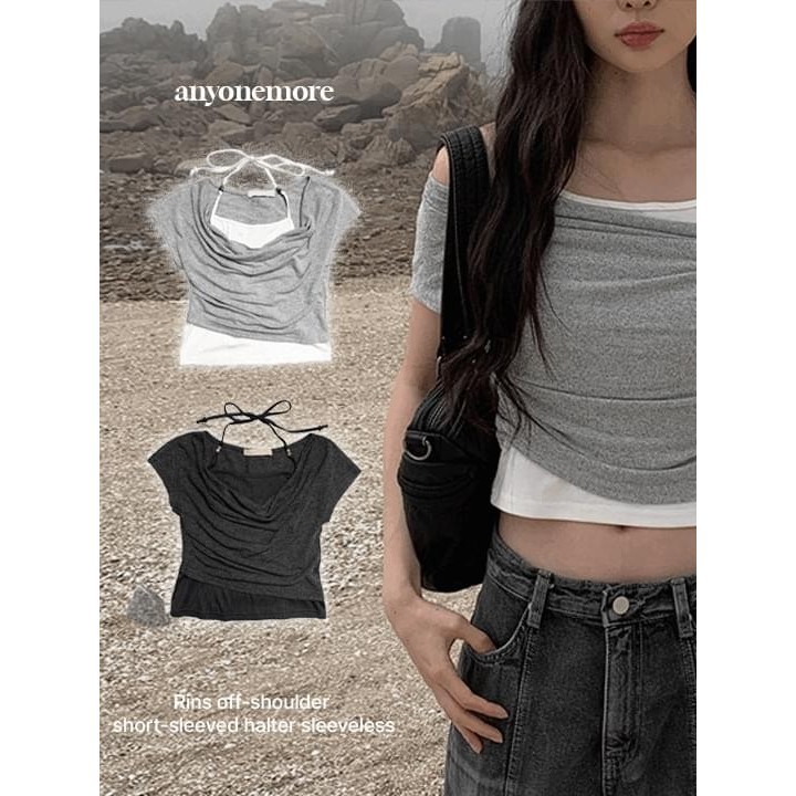 Codibook|韓國 anyonemore 掛脖露肩短袖上衣[預購]短袖上衣 女裝free,灰色|free,深灰色T-shirtsCodibook 韓國女裝購物平台