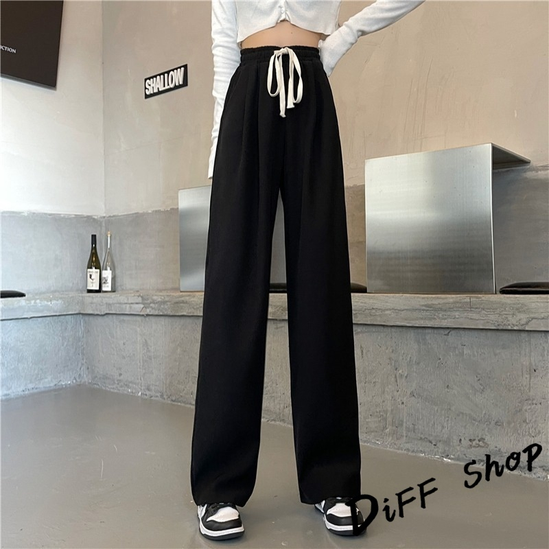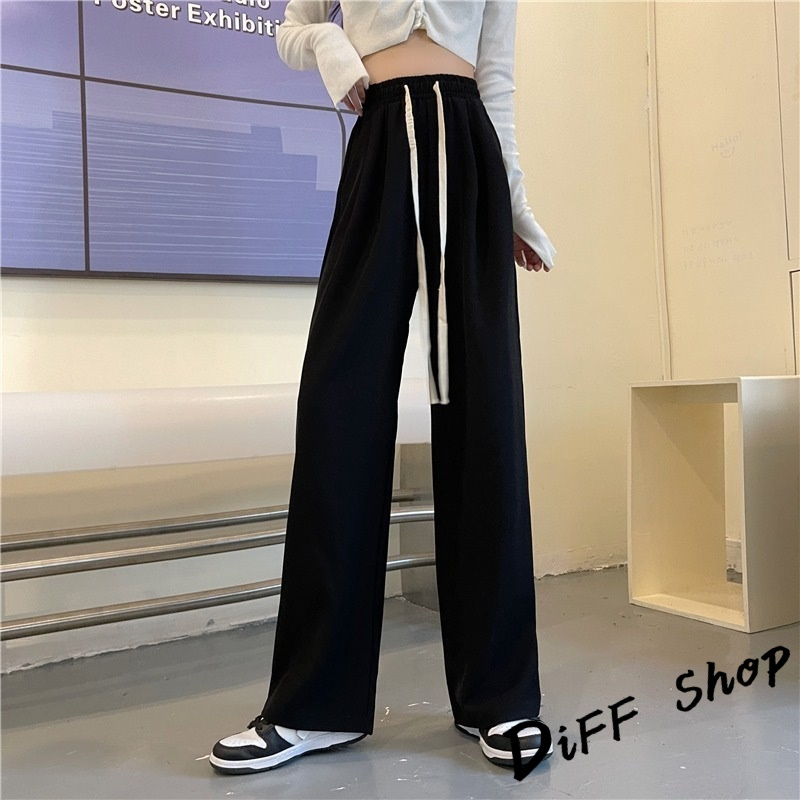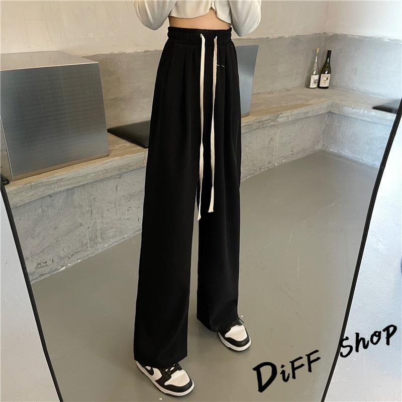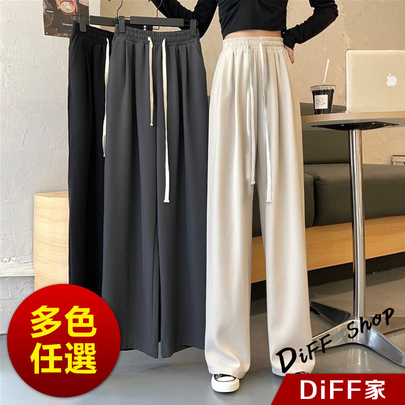 【DIFF】韓版高腰垂感寬鬆休閒直筒拖地褲 寬褲 褲子 長褲 休閒褲 女裝 高腰褲 拖地褲 直筒褲【P175】【P175】黑色|【P175】杏色PantsDiFF shop