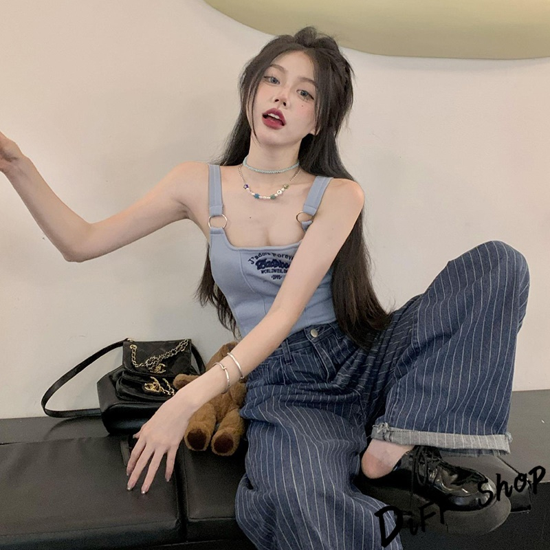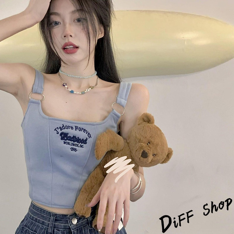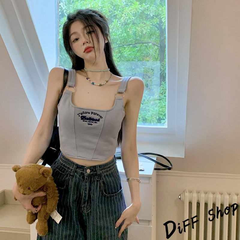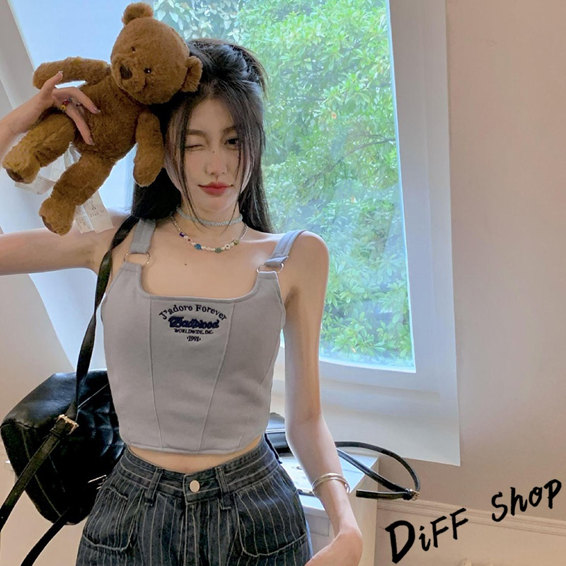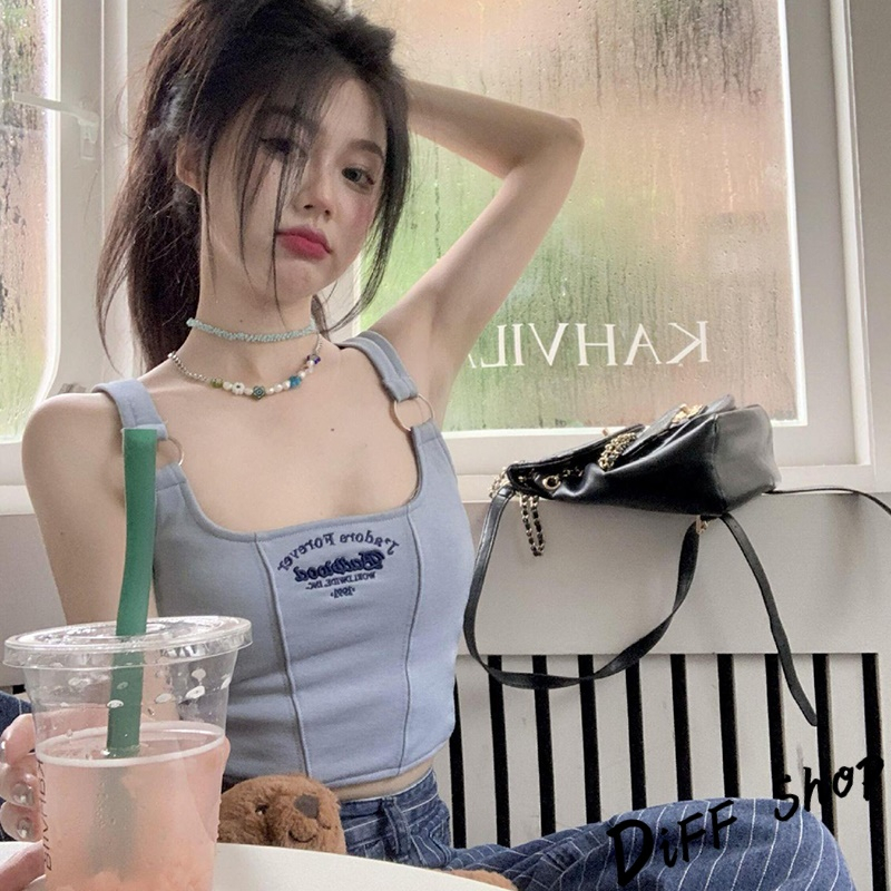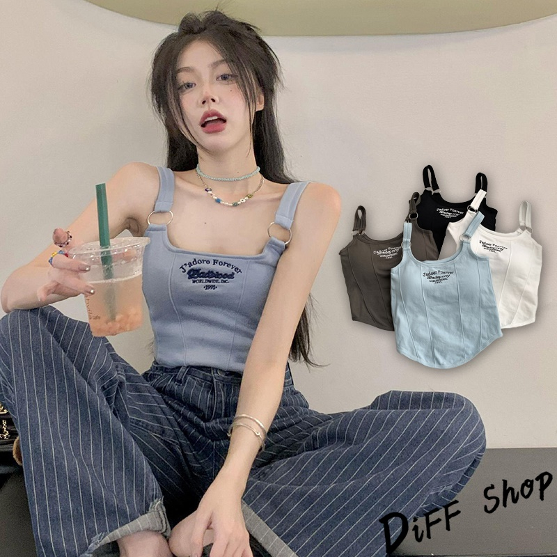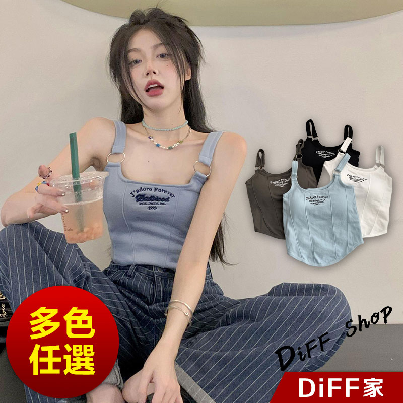 【DIFF】韓版不規則字母圓環吊帶背心 帶胸墊免穿內衣 小可愛 女裝 衣服 短版上衣 運動背心 運動上衣【V307】【V307】白色|【V307】黑色|【V307】深灰|【V307】淺藍Tanks & CamisolesDiFF shop