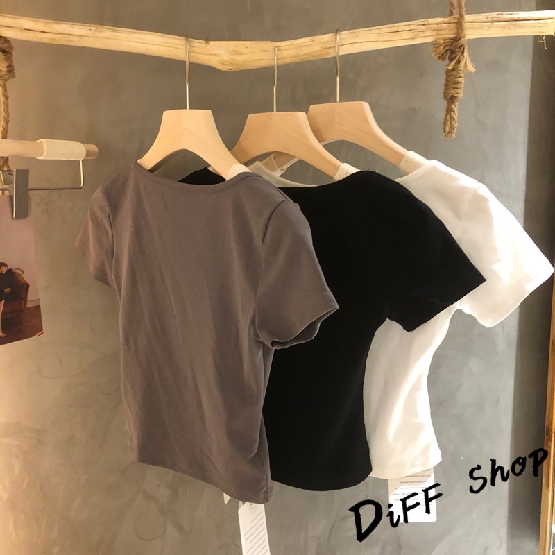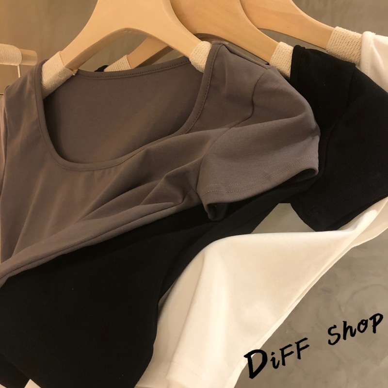 【DIFF】韓版方領彈性緊身短版上衣 短袖上衣 短袖t恤 女裝 顯瘦上衣 衣服 寬鬆上衣 素T 短板上衣【T355】【T355】黑色|【T355】白色|【T355】灰T-shirtsDiFF shop