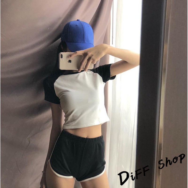 【DIFF】韓版拼接撞色系短版上衣 短袖上衣 短袖t恤 女裝 顯瘦上衣 衣服 寬鬆上衣 素T 短板上衣【T349】【T349】白色T-shirtsDiFF shop
