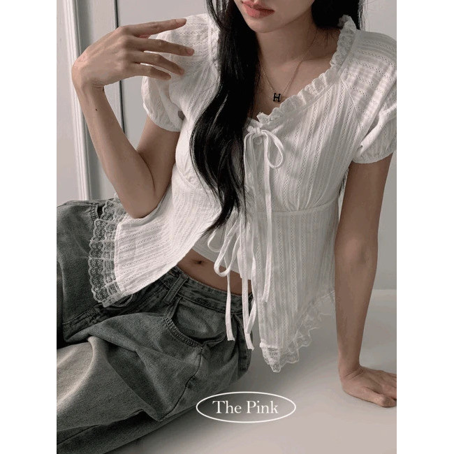 Codibook|韓國 thepink 安妮蝴蝶結鏤空蕾絲澎袖短袖襯衫[預購]雪紡襯衫 女裝白色,1size|白色,2sizeShirts & BlousesCodibook 韓國女裝購物平台