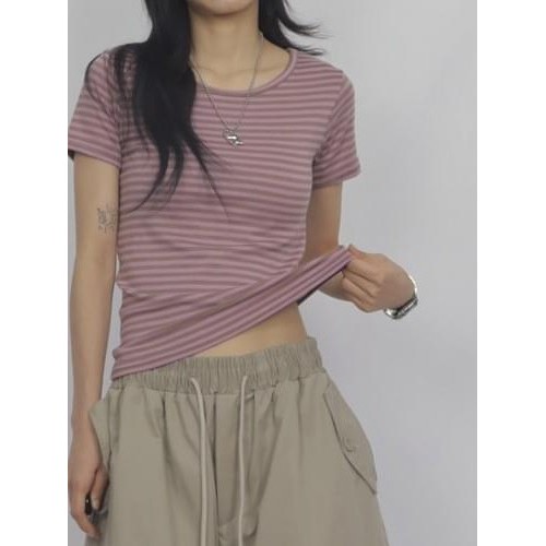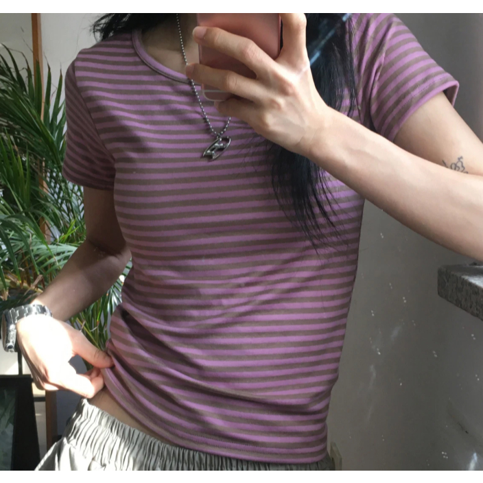 Codibook|韓國 EEZEE 條紋彈性短袖T恤 TS030[預購]短袖上衣 女裝粉紅色,Free|深灰色,FreeT-shirtsCodibook 韓國女裝購物平台