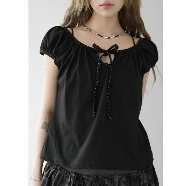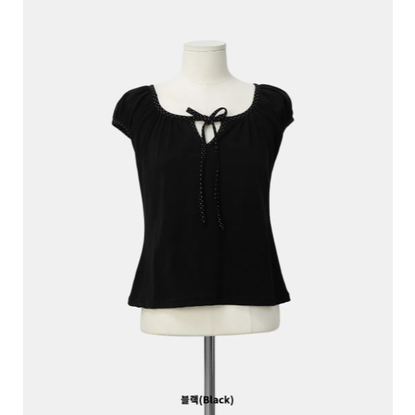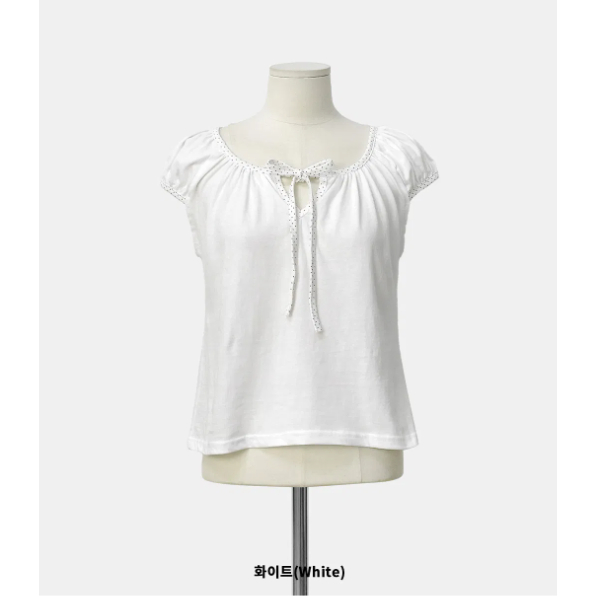 Codibook|韓國 binary01 點點緞帶圓領短袖上衣[預購]短袖上衣 雪紡襯衫 女裝白色,FREE|深灰色,FREE|黑色,FREET-shirtsCodibook 韓國女裝購物平台