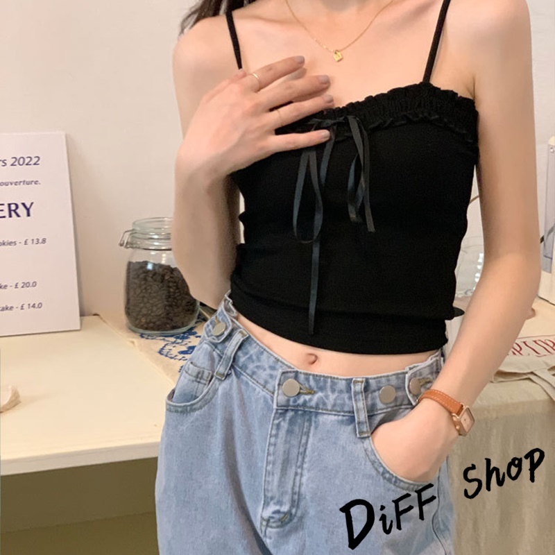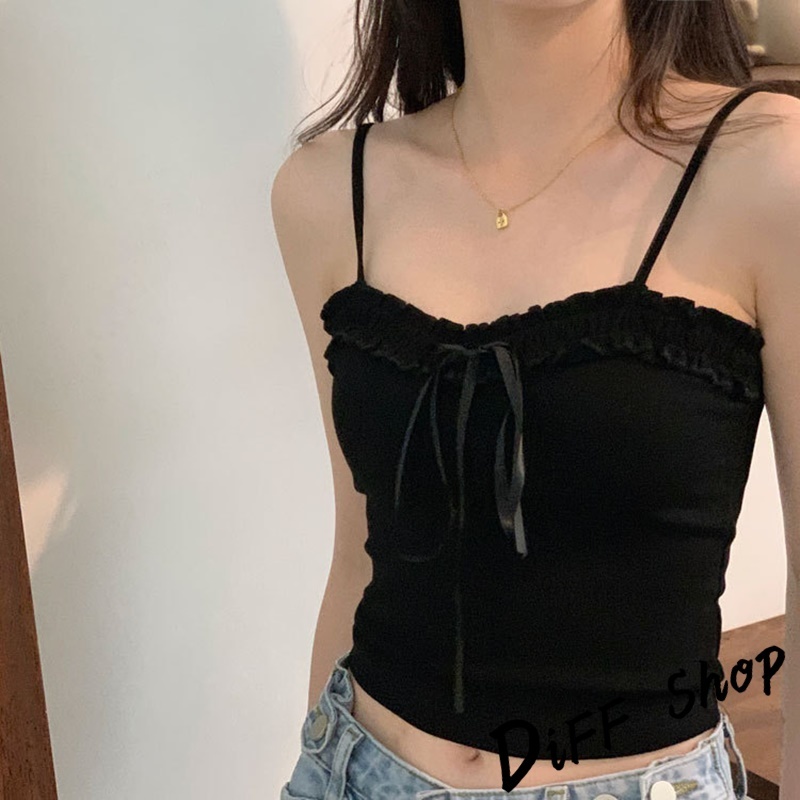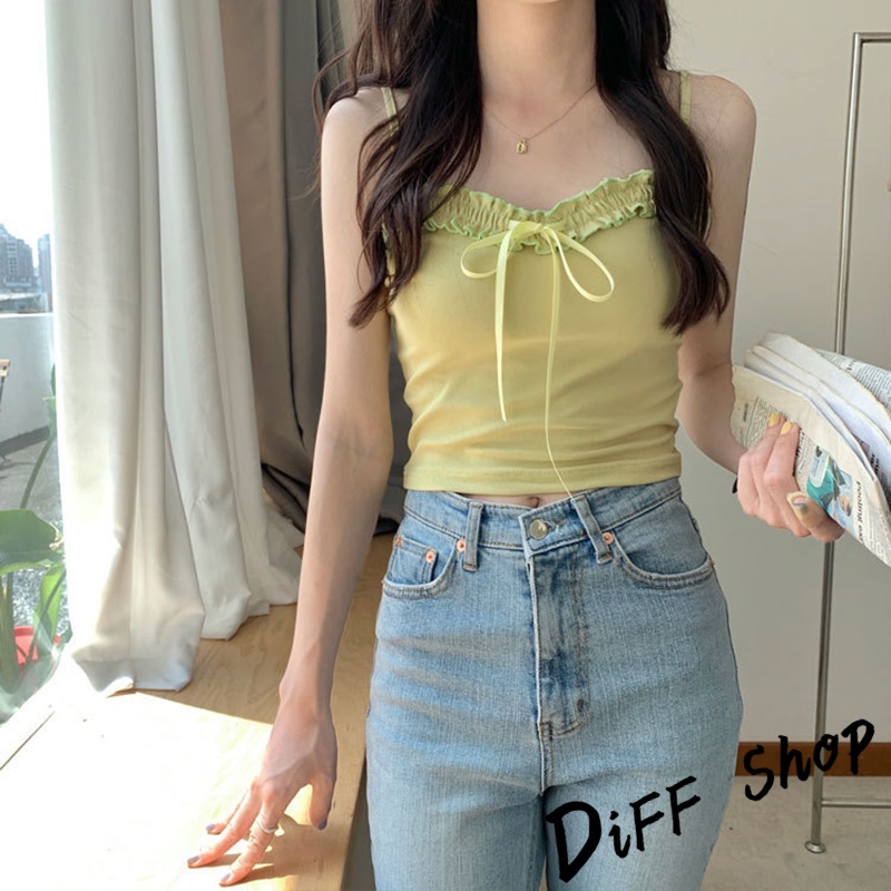【DIFF】韓版花邊褶皺繫短版背心 帶胸墊免穿內衣 小可愛 女裝 衣服 短版上衣 短板上衣 運動背心 【V367】【V367】白色|【V367】淡黃|【V367】黑色|【V367】天藍色|【V367】灰色Tanks & CamisolesDiFF shop