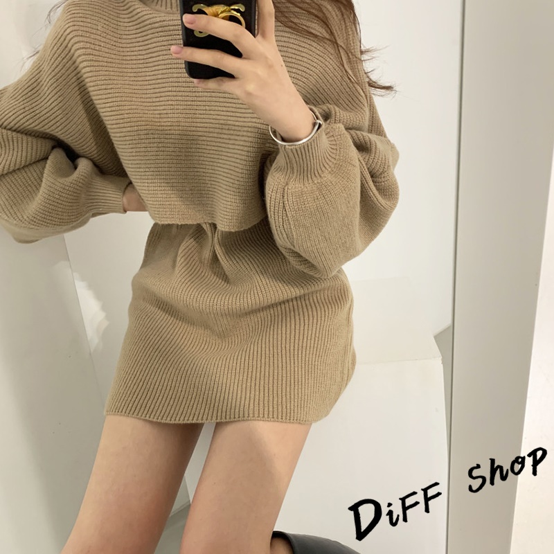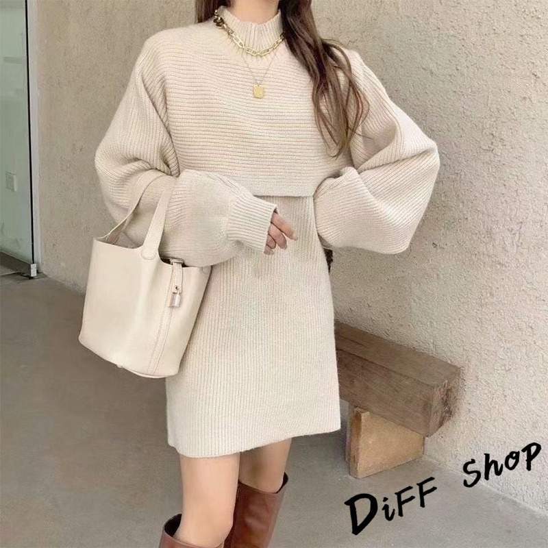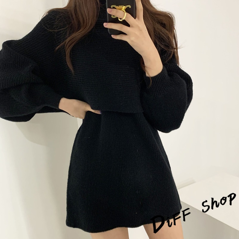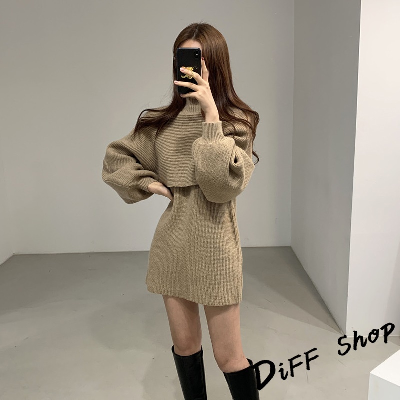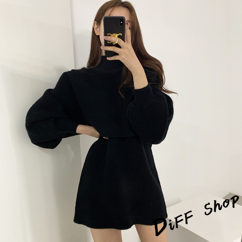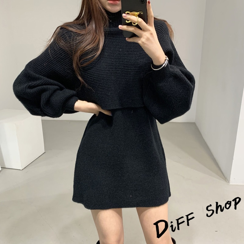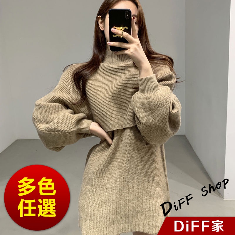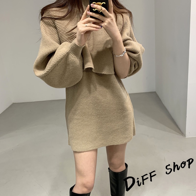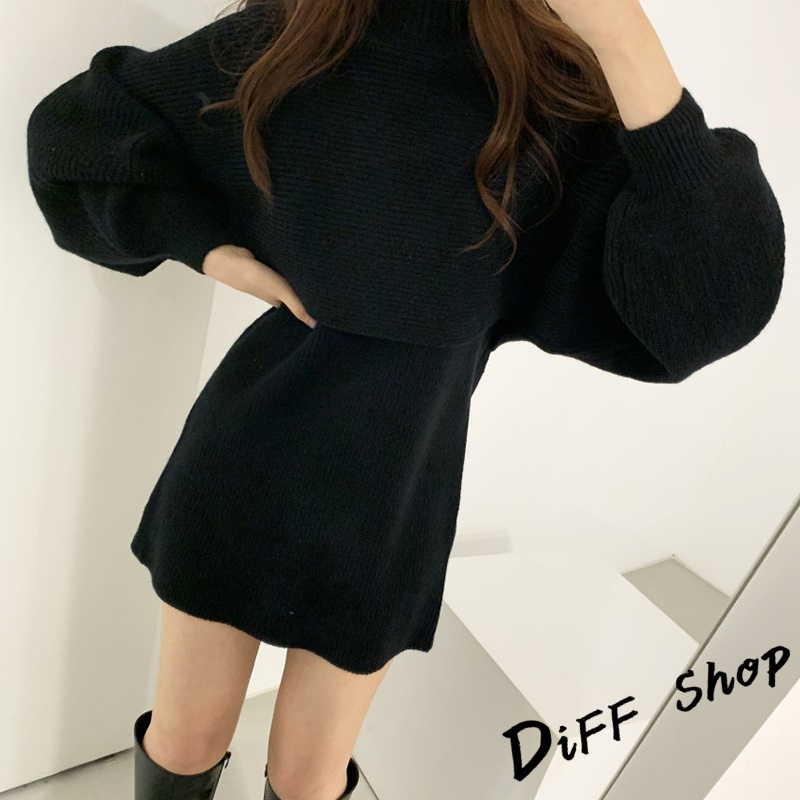 【DIFF】韓版氣質燈籠袖兩件式高領針織套裝 連衣裙 毛衣 洋裝 長袖上衣 女裝 衣服 寬鬆上衣 顯瘦上衣【S158】【S158】卡其|【S158】米白|【S158】黑色Individual SetsDiFF shop