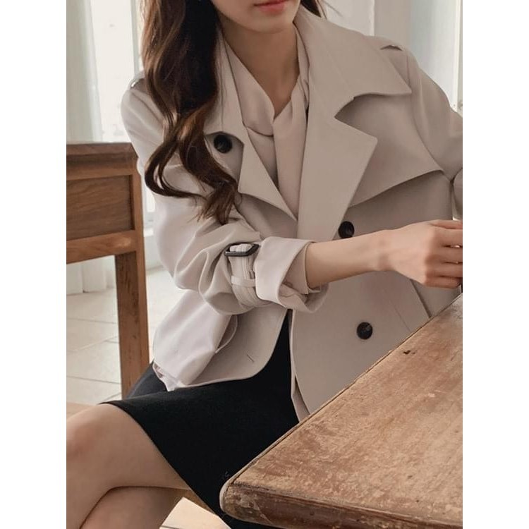 Codibook|韓國 MORENNE 雙排扣修身短風衣[預購]夾克 雙排扣外套 女裝奶油色|米褐色|海軍藍(深藍色)|黑色JacketsCodibook 韓國女裝購物平台