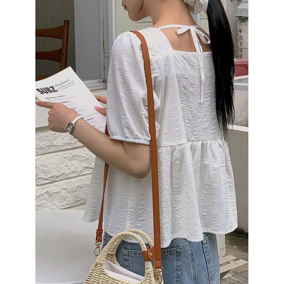 Codibook|韓國 RIRINCO 褶皺方領荷葉擺短袖襯衫[預購]雪紡襯衫 女裝象牙白,1[44~55][XS~S]|黑色,1[44~55][XS~S]|象牙白,2[66~77][M~L]|黑色,2[66~77][M~L]|象牙白,3[88~99][XL~2XL]|黑色,3[88~99][XL~2XL]|象牙白,4[110~120][3XL~5XL]|黑色,4[110~120][3XL~5XL]Shirts & BlousesCodibook 韓國女裝購物平台