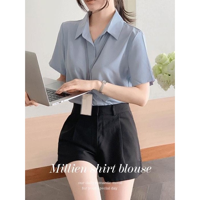 Codibook|韓國 FROMDAYONE 天空藍職業風短袖襯衫上衣[預購]襯衫 雪紡襯衫 女裝靛粉色|淺薄荷|淺藍|海軍藍|白色|淺米Shirts & BlousesCodibook 韓國女裝購物平台