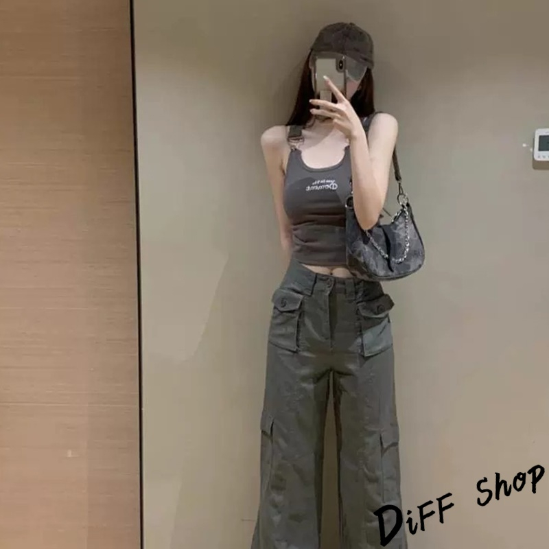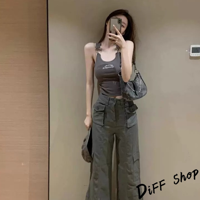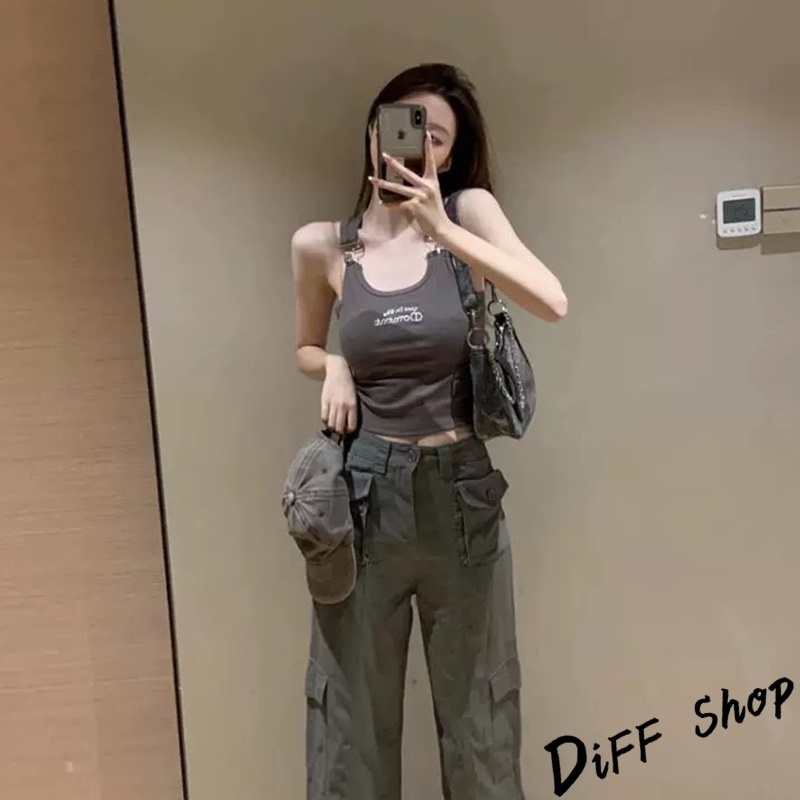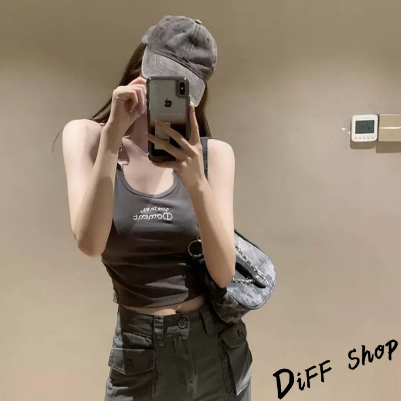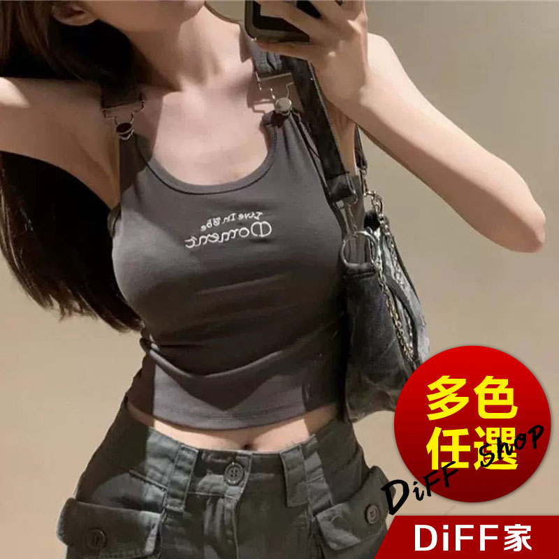 【DIFF】韓版刺繡字母吊帶背心 帶胸墊免穿內衣 小可愛 女裝 衣服 短版上衣 運動背心 運動上衣【V306】【V306】深灰Tanks & CamisolesDiFF shop