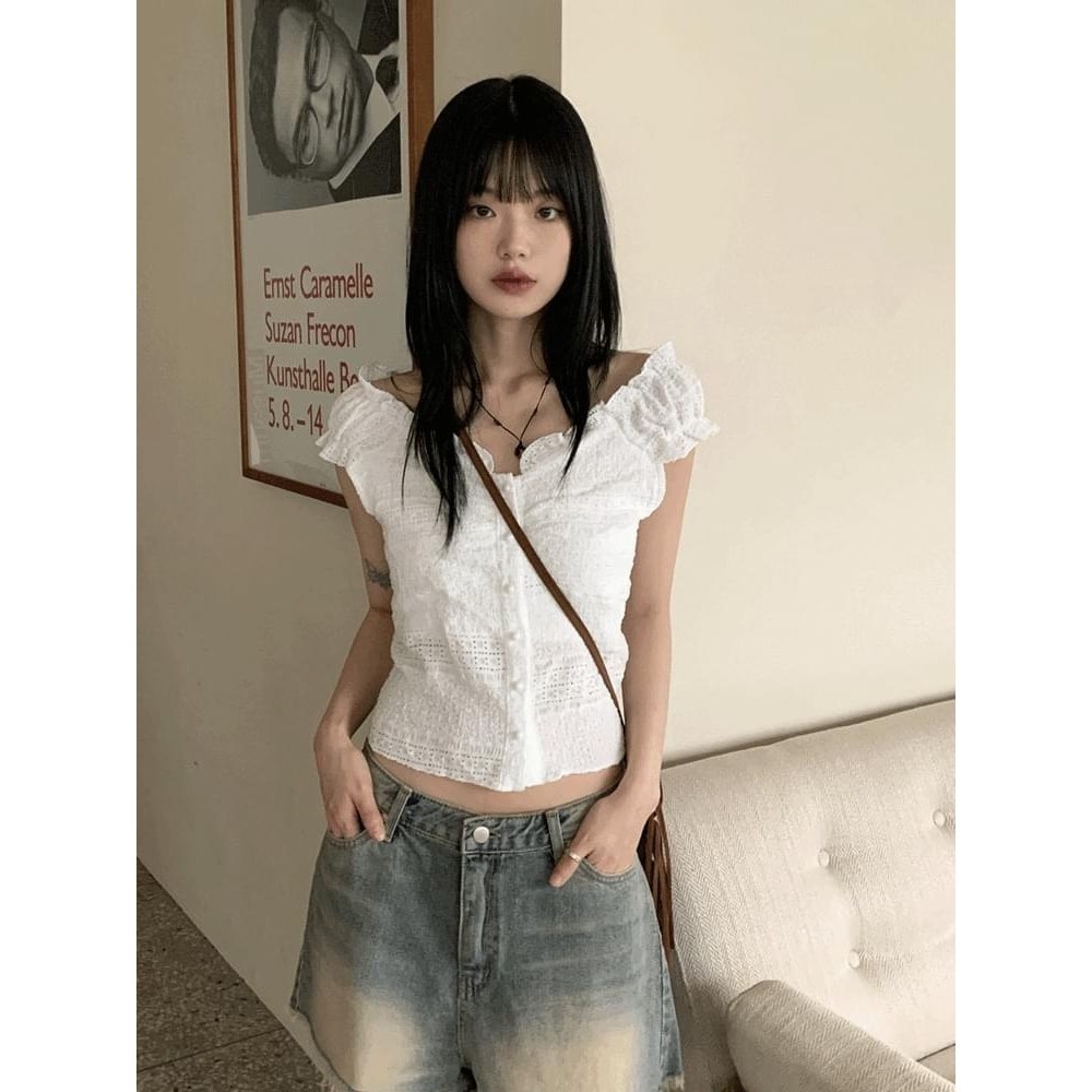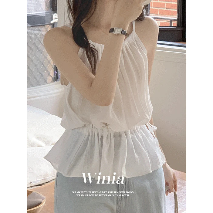 Codibook|韓國 FROMDAYONE 方領荷葉邊抓皺無袖上衣[預購]無袖 雪紡襯衫 女裝象牙白|奶油色|天空藍|黑色Tanks & CamisolesCodibook 韓國女裝購物平台
