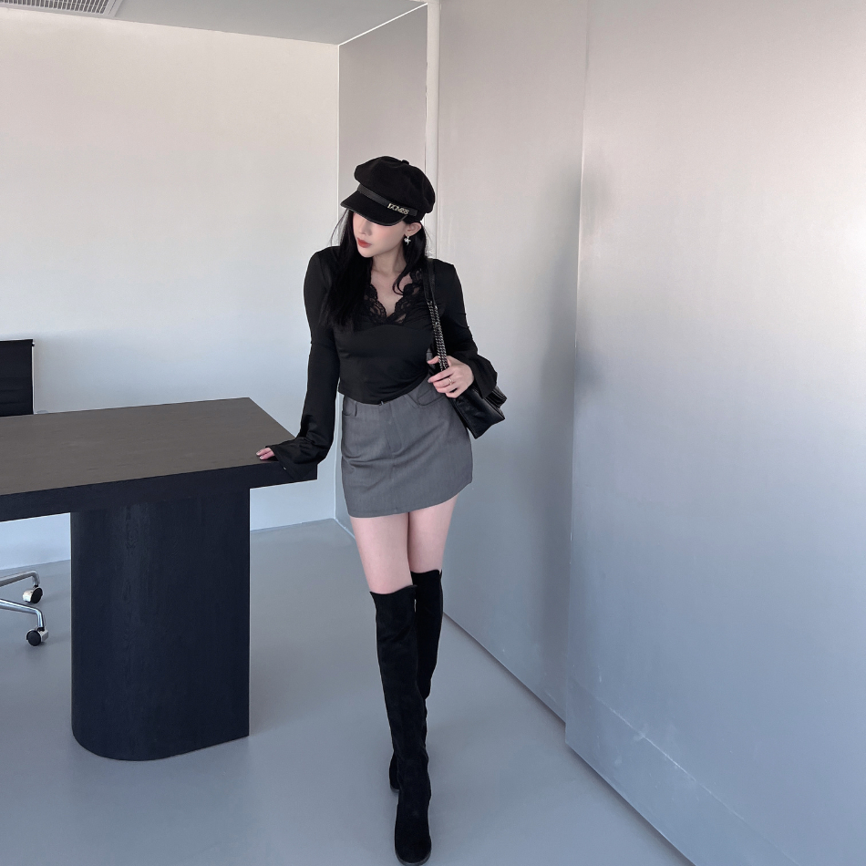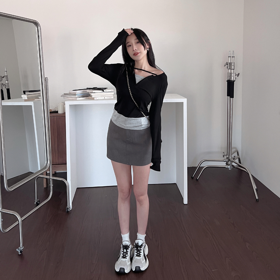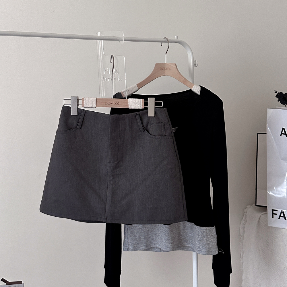 【Miu系穿搭】DOMISS百搭西裝短裙 miu風 西裝褲裙(現貨)灰色,S(現貨)|灰色,M(現貨)|灰色,L(現貨)DOMISS 朵蜜絲