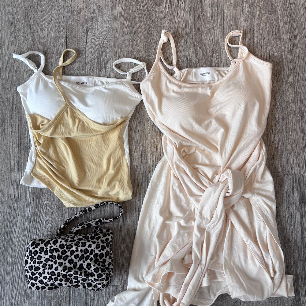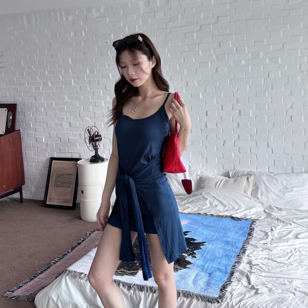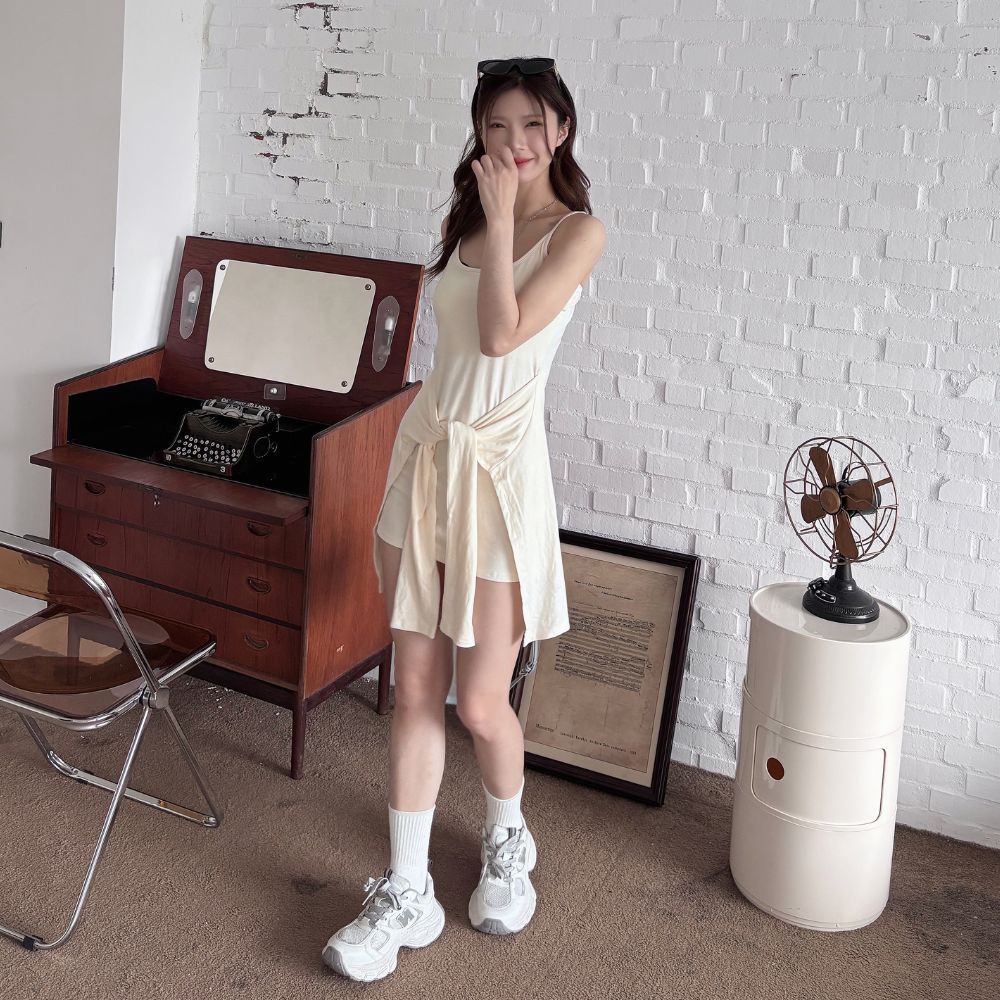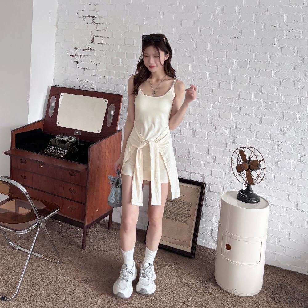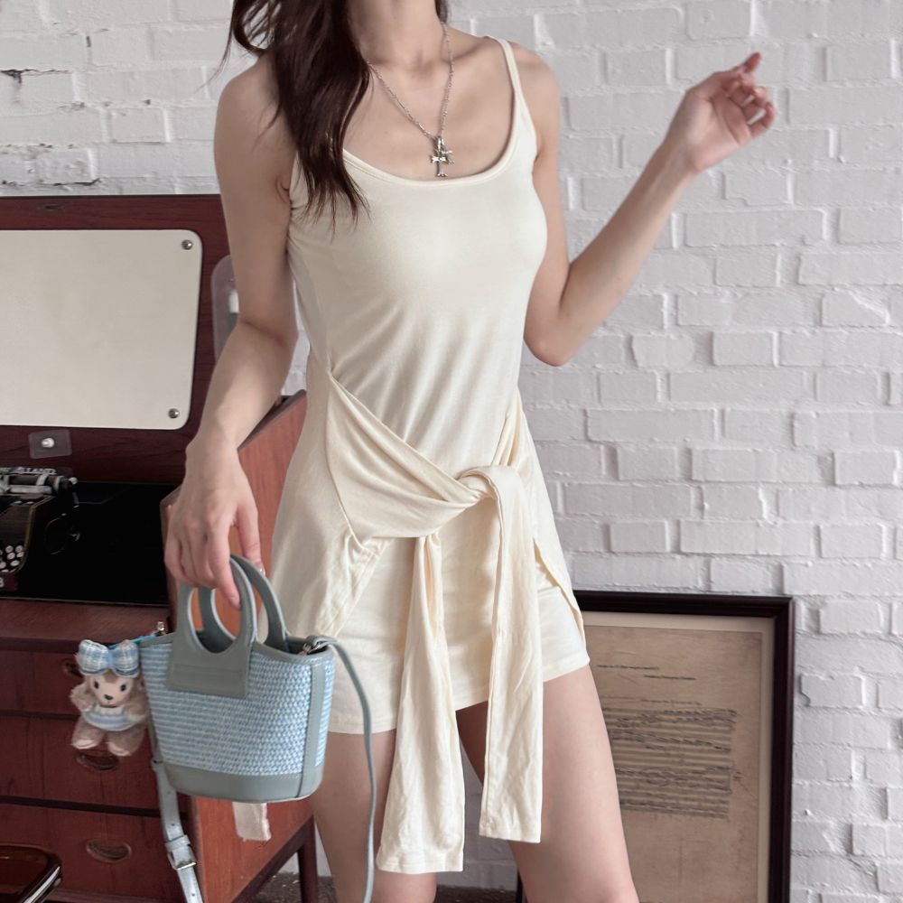 【DOMISS自訂】一秒完成穿搭! 綁帶背心連身洋裝 無袖背心裙-2色(現貨)奶油杏|湖水藍DOMISS 朵蜜絲