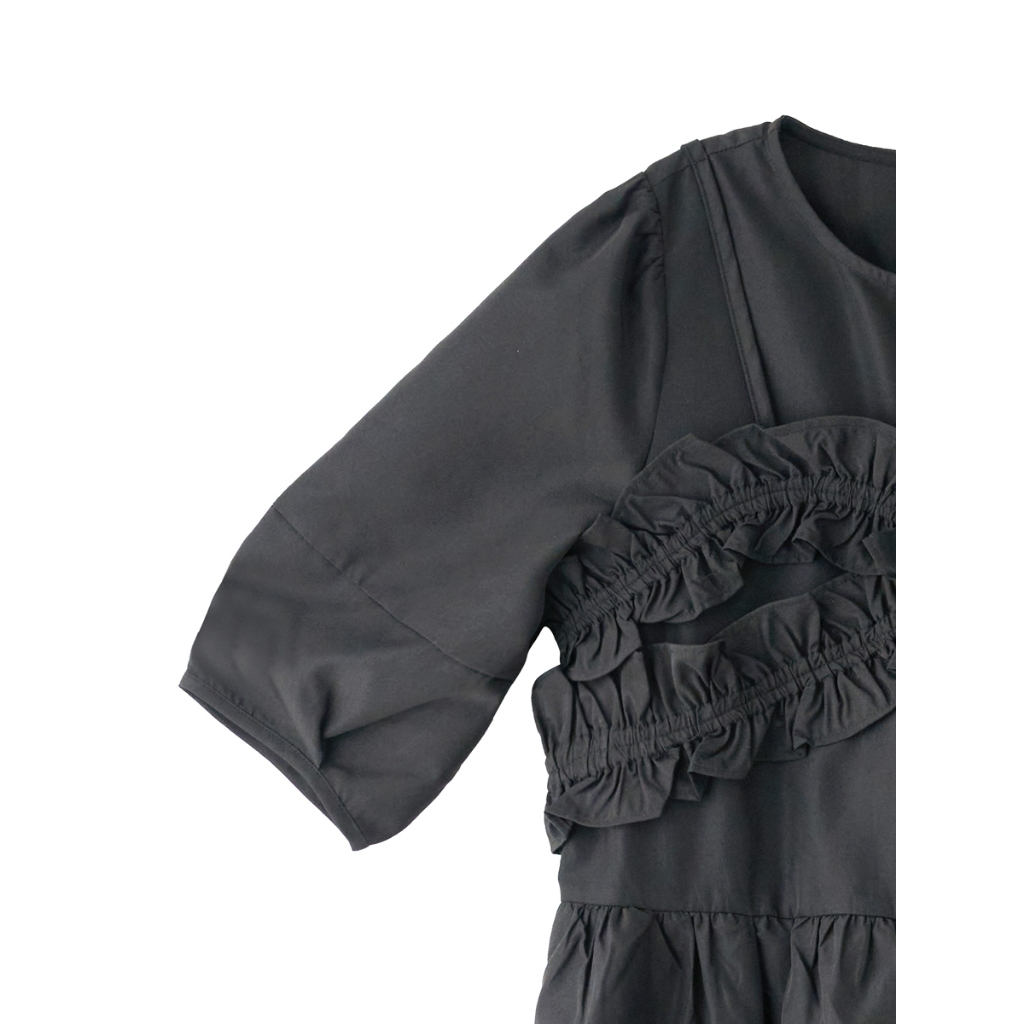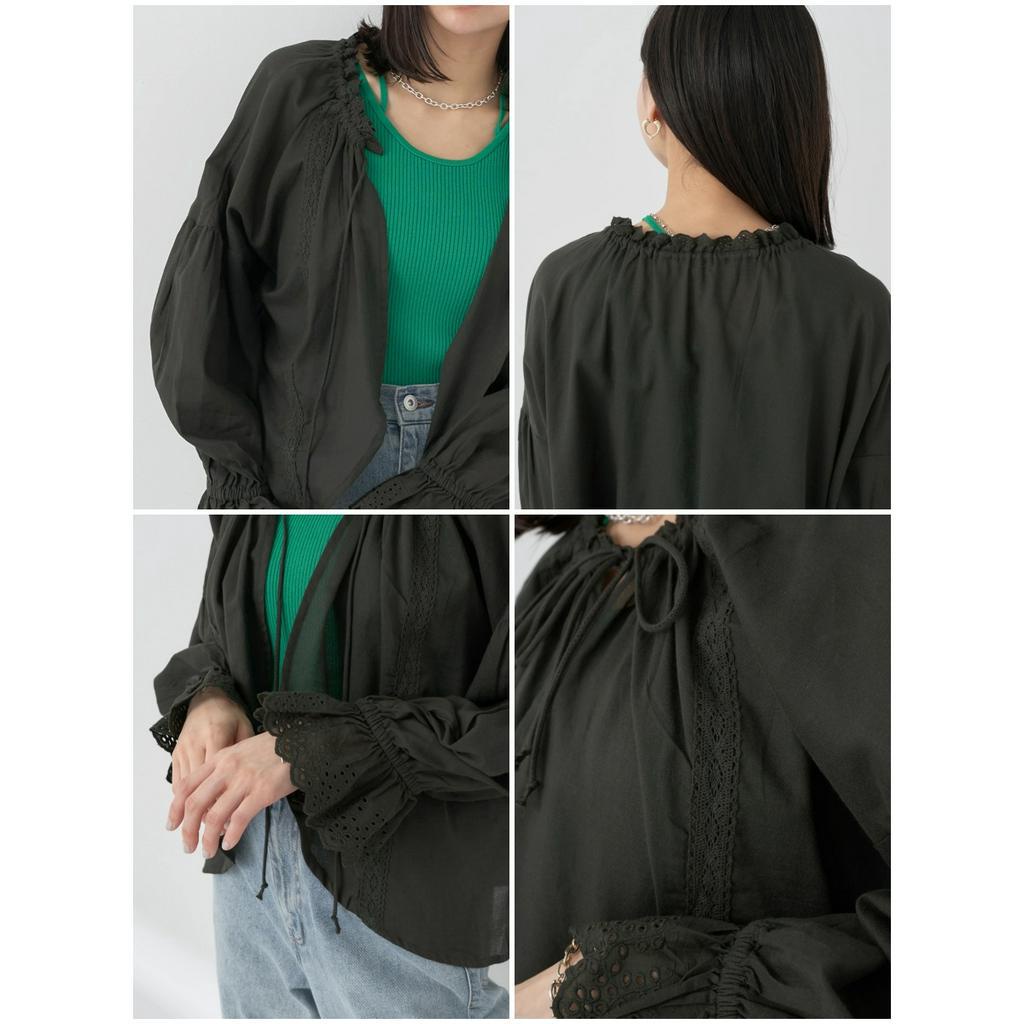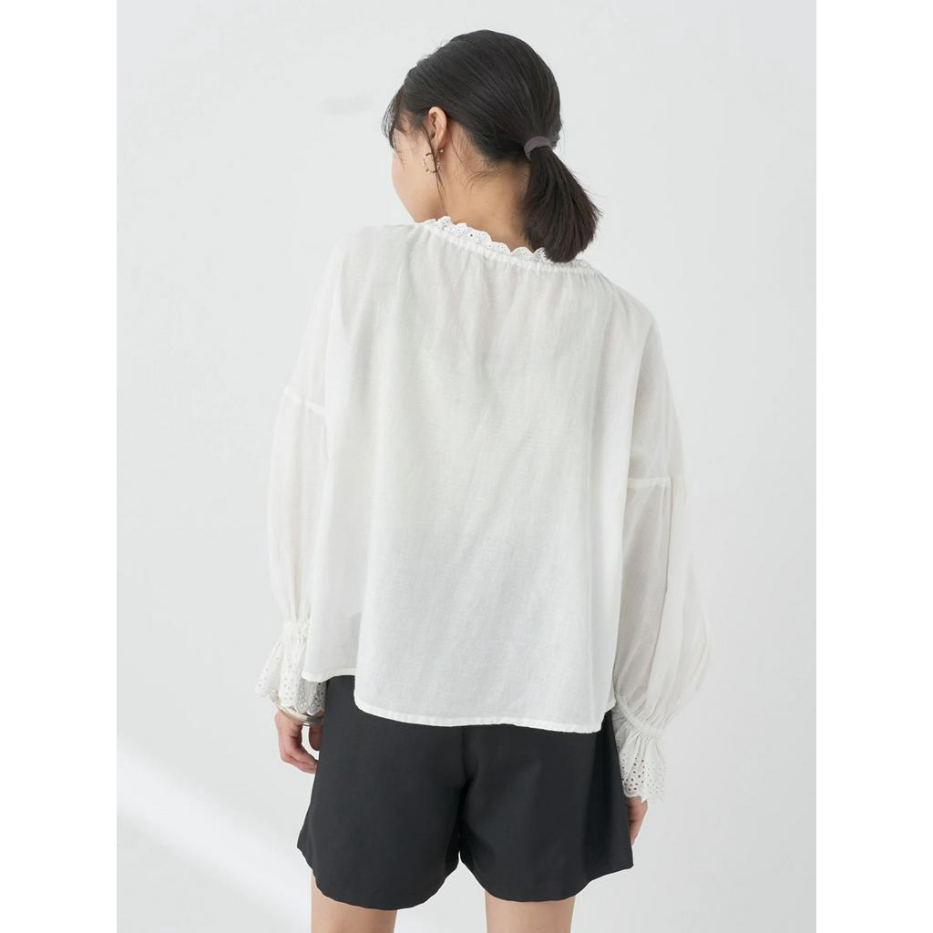earth music&ecology 蕾絲摺邊綁帶設計喇叭袖純棉開襟上衣(1M32L0A0100)黑色F|米色F|本白FT-shirtsearth music&ecology Select Store