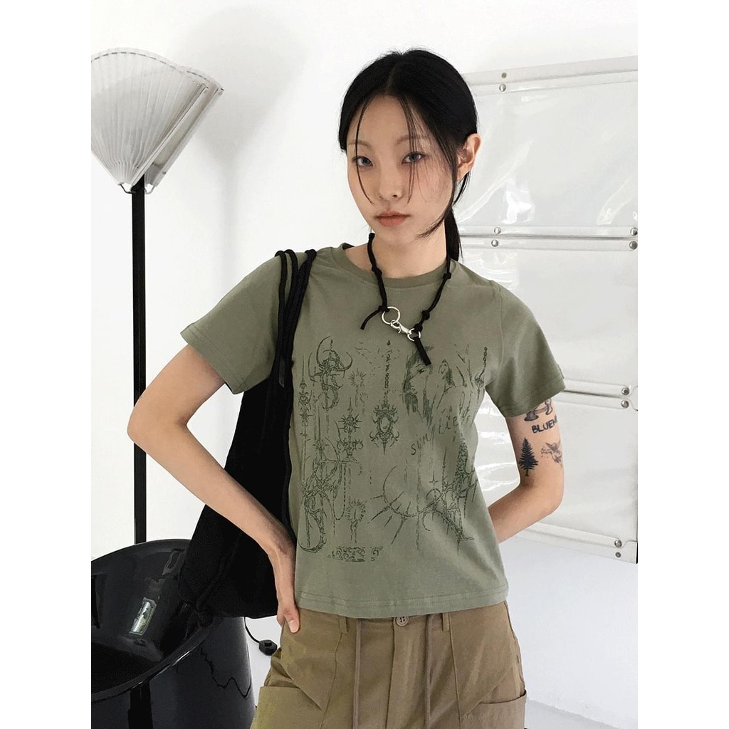 Codibook|韓國 wonderwonder 刺青圖案圓領半版短袖T恤[預購]短袖上衣 女裝黑,FREE|白色,FREE|卡其色,FREET-shirtsCodibook 韓國女裝購物平台