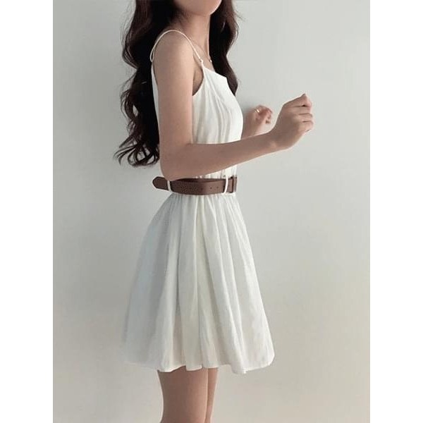 Codibook|韓國 moodloveroom 簡約綁帶無袖V領洋裝[預購]迷你短洋裝 細肩帶緞面洋裝 女裝象牙白,Free|黑色,FreeCodibook 韓國女裝購物平台