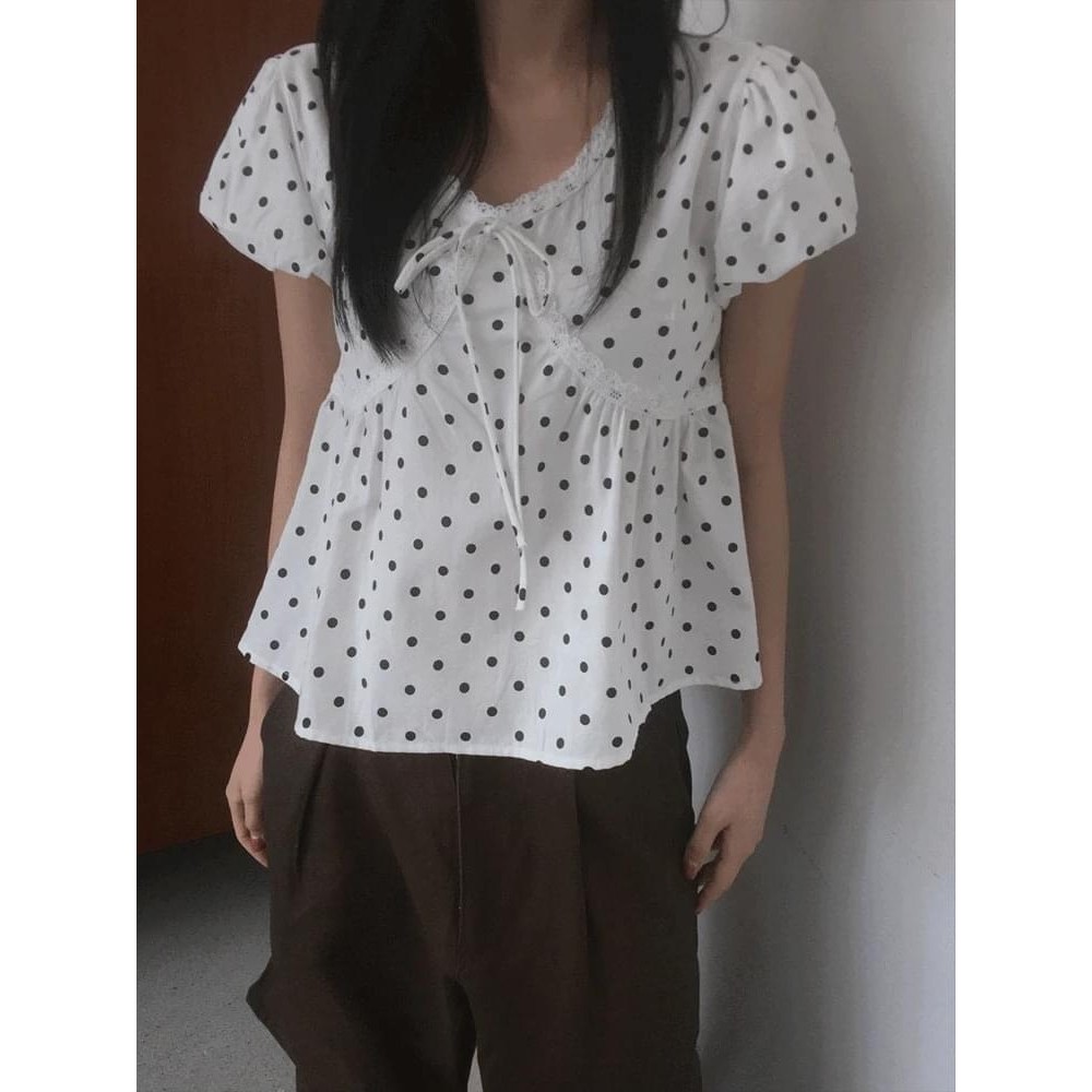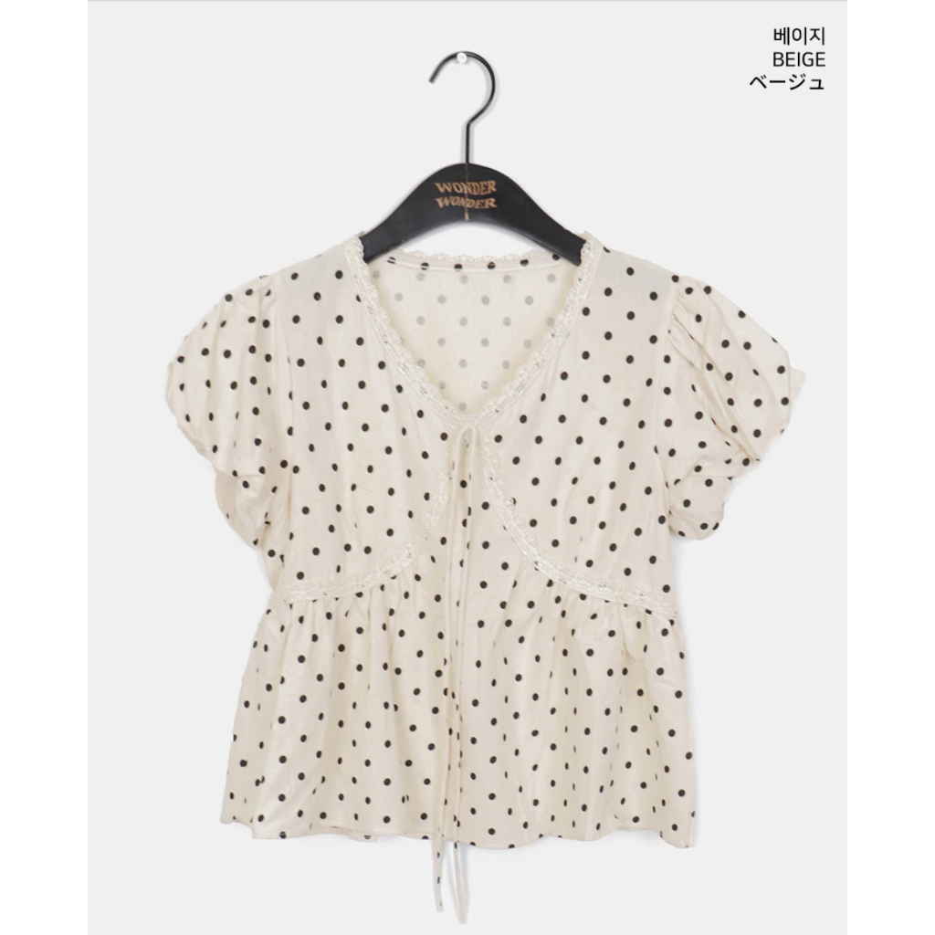Codibook|韓國 wonderwonder 新款點點蕾絲綁帶短袖襯衫[預購]雪紡襯衫 女裝白色,FREE|棕色,FREE|米褐色,FREEShirts & BlousesCodibook 韓國女裝購物平台