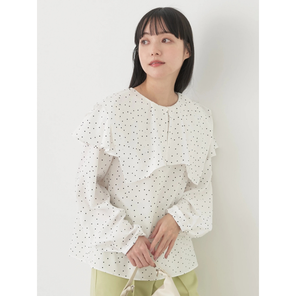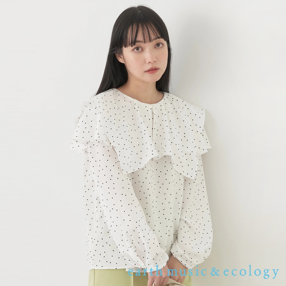earth music&ecology 素面/圓點層次翻領長袖襯衫上衣(1N41L0C0500)本白F|藍色F|深藍色F|圓點FShirts & Blousesearth music&ecology Select Store