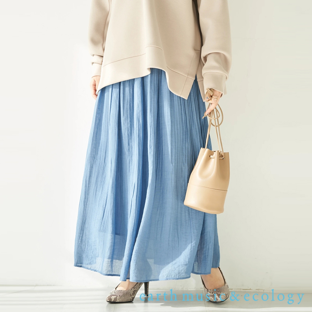 earth music&ecology 鬆緊腰碎摺設計百褶裙(1D21L0L0540)淺米白F|藍色Fearth music&ecology Select Store