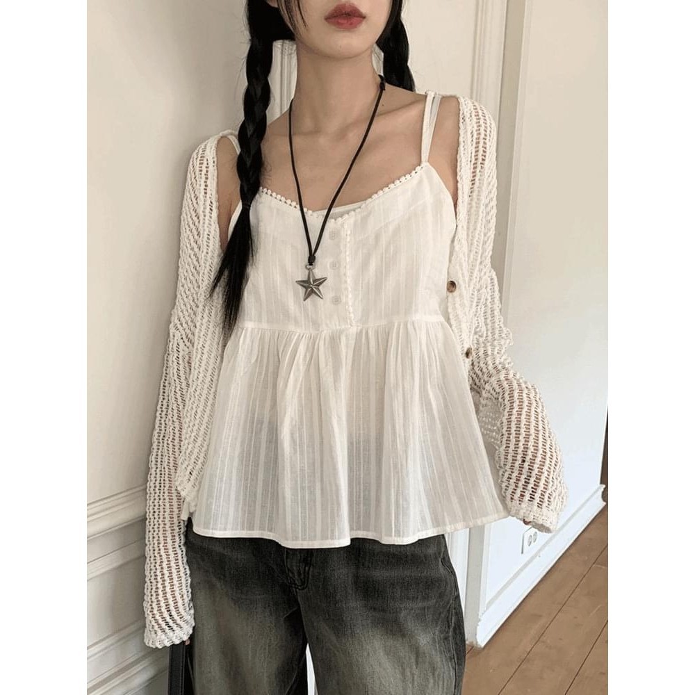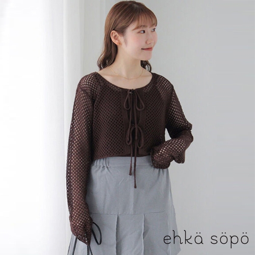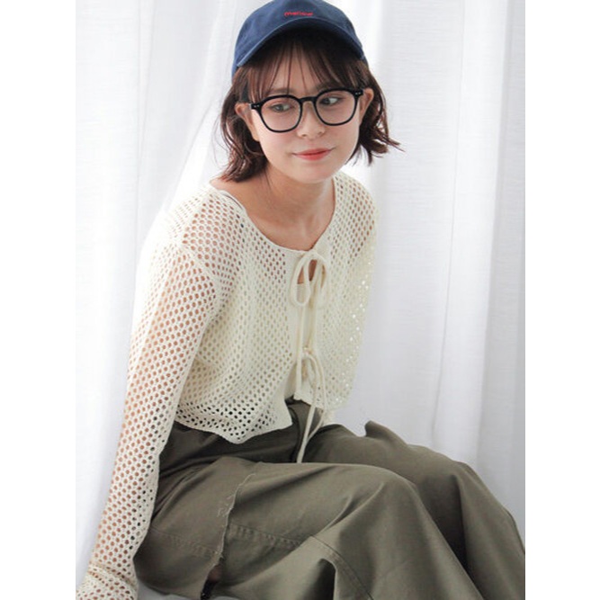 ehka sopo 【SET ITEM】網眼鏤空短版綁結罩衫+細肩吊帶背心(FF43L2D0180)象牙色F|粉紅色F|棕色F|綠色FTanks & Camisolesearth music&ecology Select Store