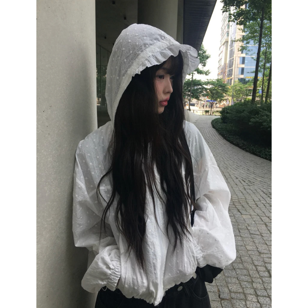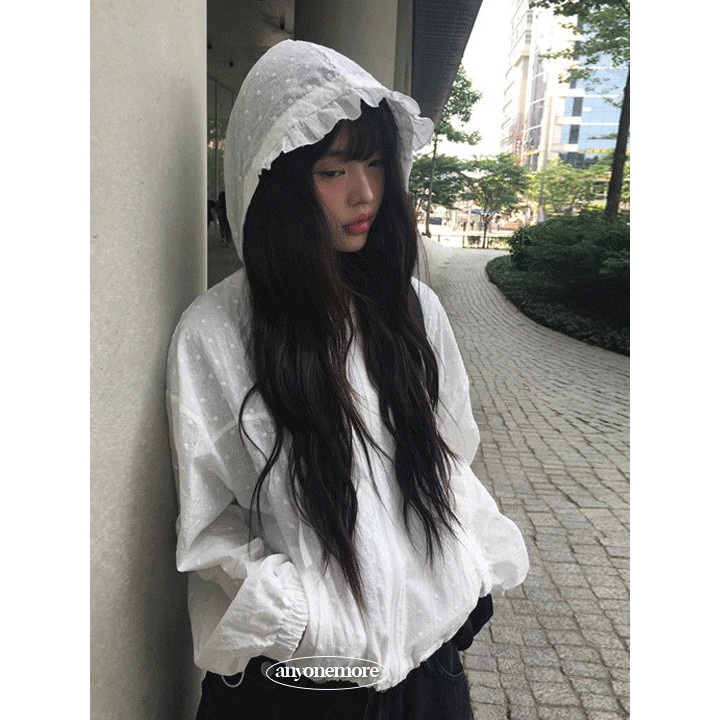 Codibook|韓國 anyonemore 透膚荷葉邊點點連帽防風外套[預購]拉鍊外套 女裝free,白色JacketsCodibook 韓國女裝購物平台