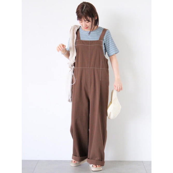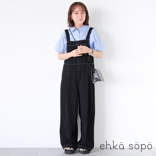 ehka sopo 配色縫線設計工裝吊帶長褲(FF46L0F0680)黑色F|米色F|深咖啡色FOverallsearth music&ecology Select Store