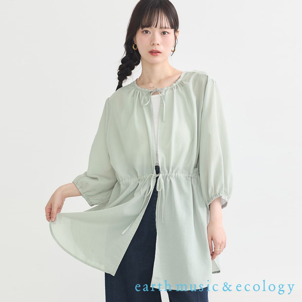 earth music&ecology 微透感腰際抽繩七分袖襯衫/罩衫(01000895300)