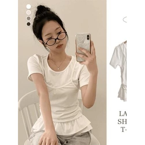 Codibook|韓國 peachmode 層次感荷葉邊U領綁帶短袖T恤[預購]短袖上衣 T恤 女裝灰色,FREE|黑色,FREE|象牙白,FREE|米褐色,FREET-shirtsCodibook 韓國女裝購物平台