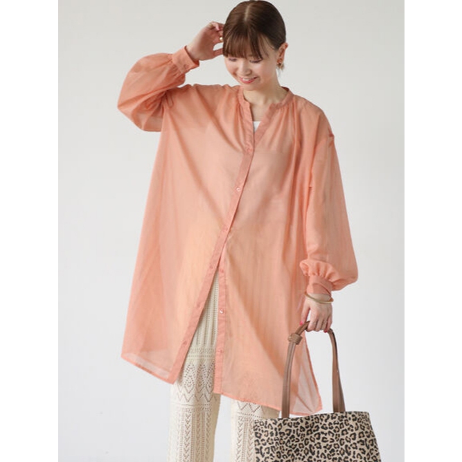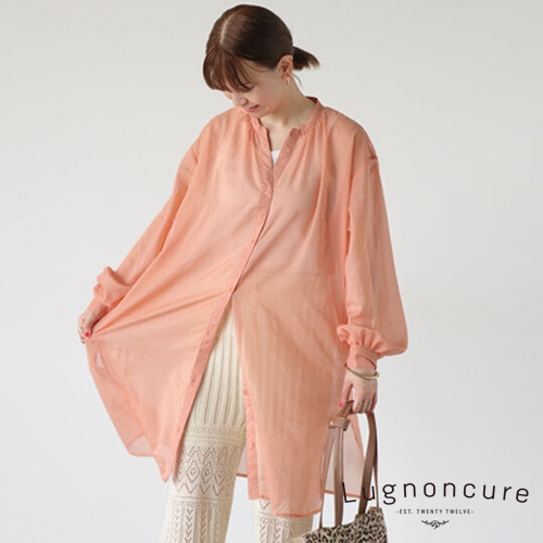Lugnoncure 透明感立領長版襯衫(FD46L0A0880)本白F|黑色F|橙色F|紫色FShirts & Blousesearth music&ecology Select Store