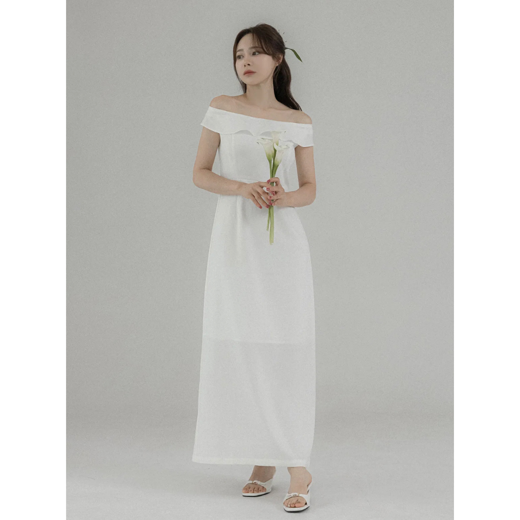 Codibook|韓國 RIRINCO 露肩荷葉邊彈性長版洋裝[預購]長洋裝 露肩洋裝 女裝象牙白,1[44~55][XS~S]|黑色,1[44~55][XS~S]|象牙白,2[66][M]|黑色,2[66][M]|象牙白,3[77][L]|黑色,3[77][L]|象牙白,4[88~99][XL~2XL]|黑色,4[88~99][XL~2XL]|象牙白,5[110~120][3XL~5XL]|黑色,5[110~120][3XL~5XL]Codibook 韓國女裝購物平台