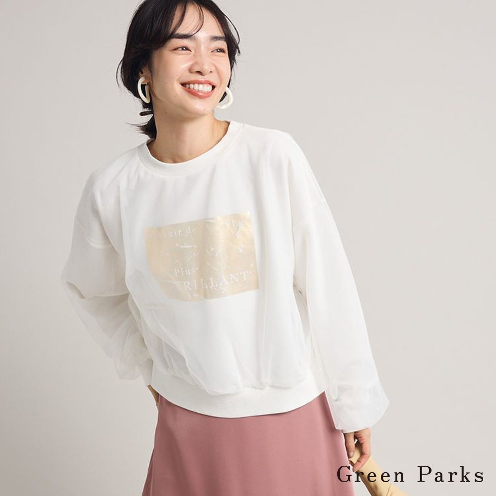 Green Parks 注目鋁箔印花薄紗分層上衣(06000248700)混灰色F|淡青色F|淡褐色FT-shirtsearth music&ecology Select Store