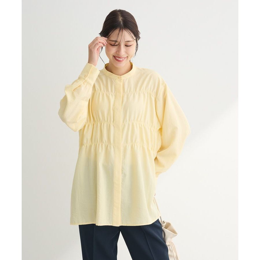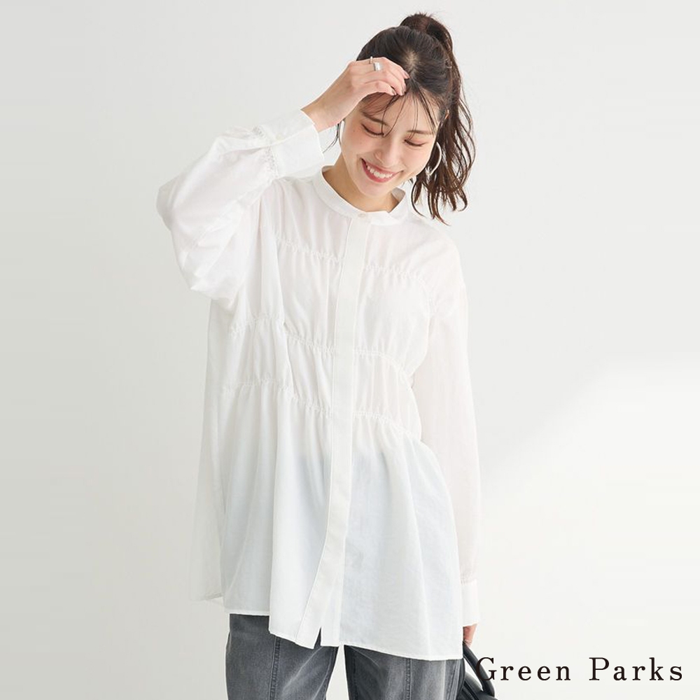 Green Parks 抓褶拼接立領隱扣長版襯衫(06000164200)藍色F|象牙色F|黑色F|淡黃色FShirts & Blousesearth music&ecology Select Store
