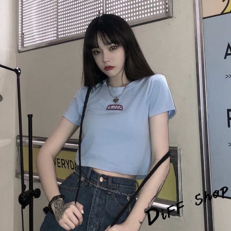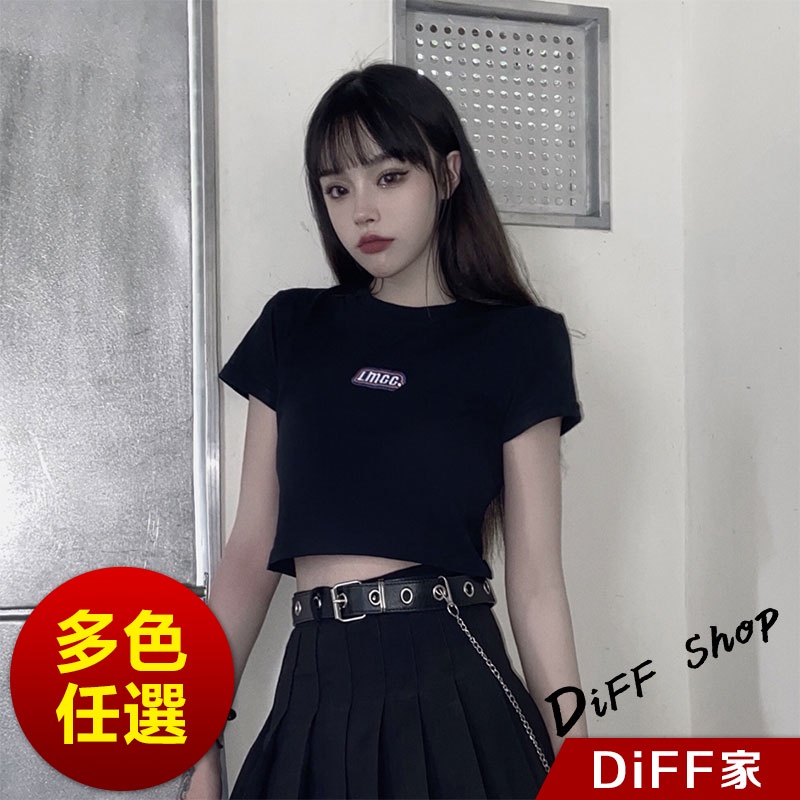 【DIFF】韓版字母黑色修身顯瘦短版上衣 短袖上衣 短袖t恤 女裝 顯瘦上衣 衣服 寬鬆上衣 素T 短板上衣【T427】【T427】黑色|【T427】粉紅色|【T427】藍色T-shirtsDiFF shop