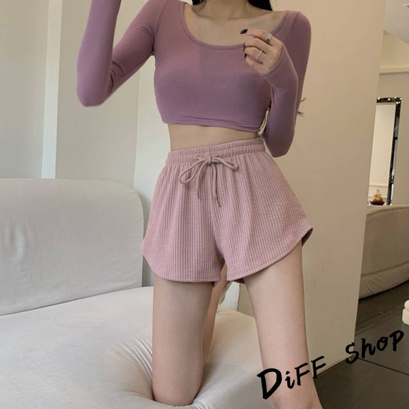 【DIFF】韓版居家休閒高腰短褲 休閒褲 短褲 褲子 運動短褲 女裝 休閒短褲 運動褲 睡褲【P191】【P191】灰色|【P191】黑色|【P191】粉色|【P191】杏色ShortsDiFF shop
