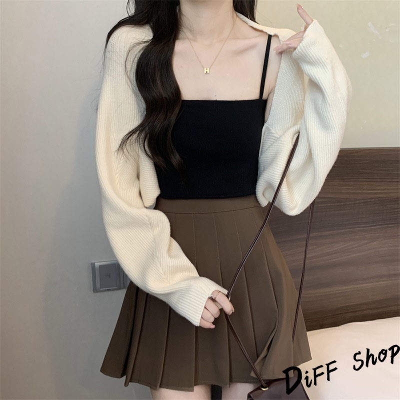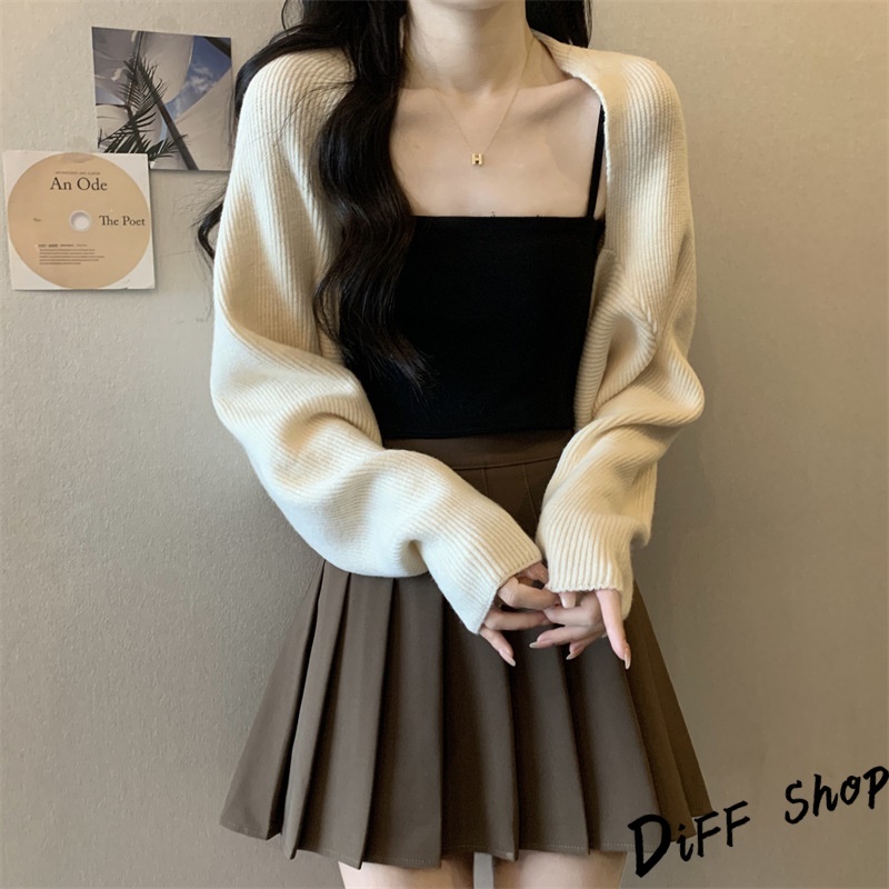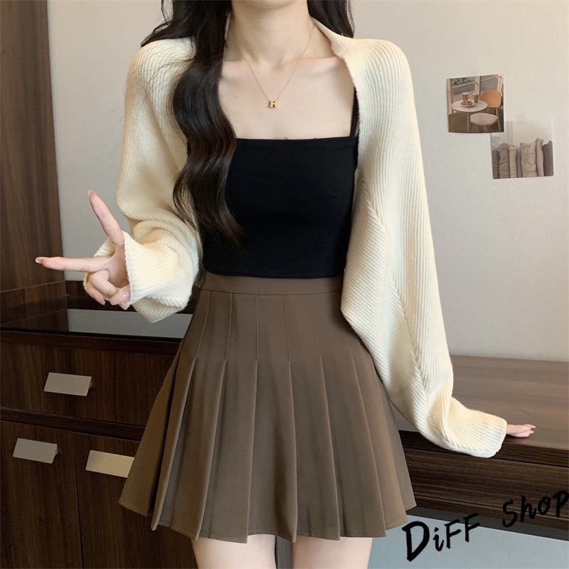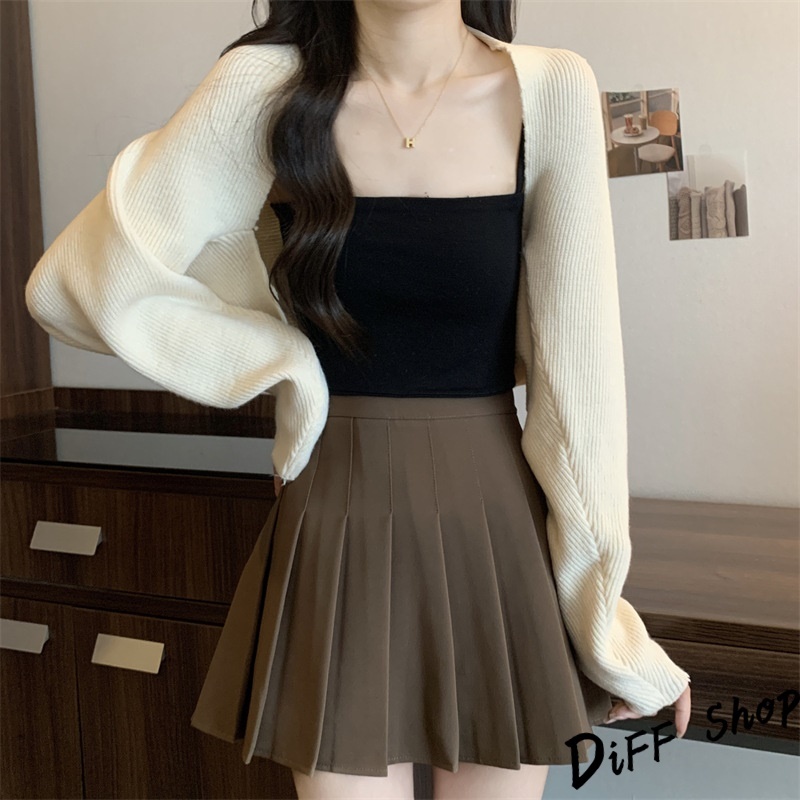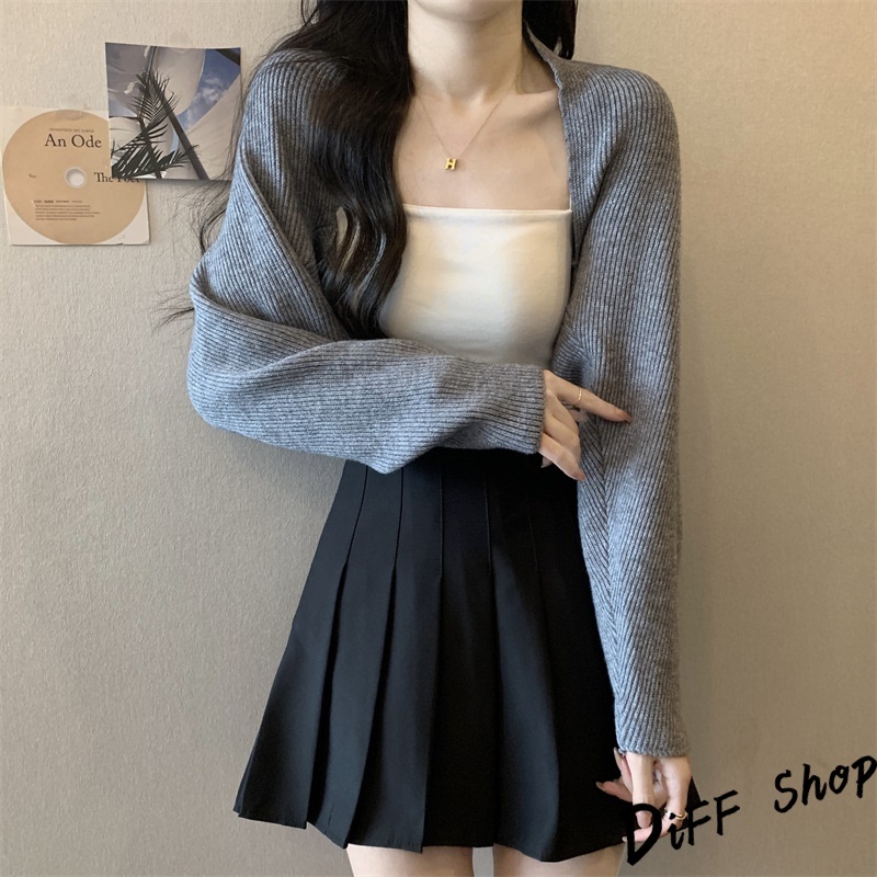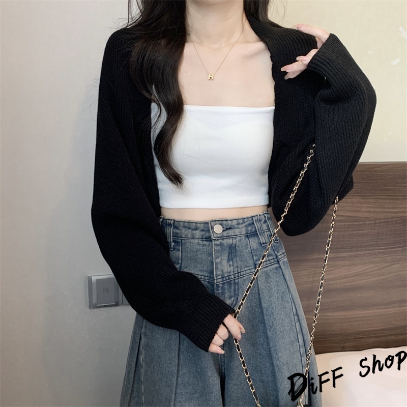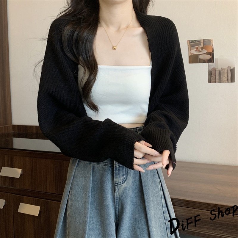 【DIFF】韓版法式氣質薄款針織小披肩 短版外套 針織外套 上衣 女裝 衣服 外套 長袖上衣【J195】【J195】杏色|【J195】黑色|【J195】灰色DiFF shop