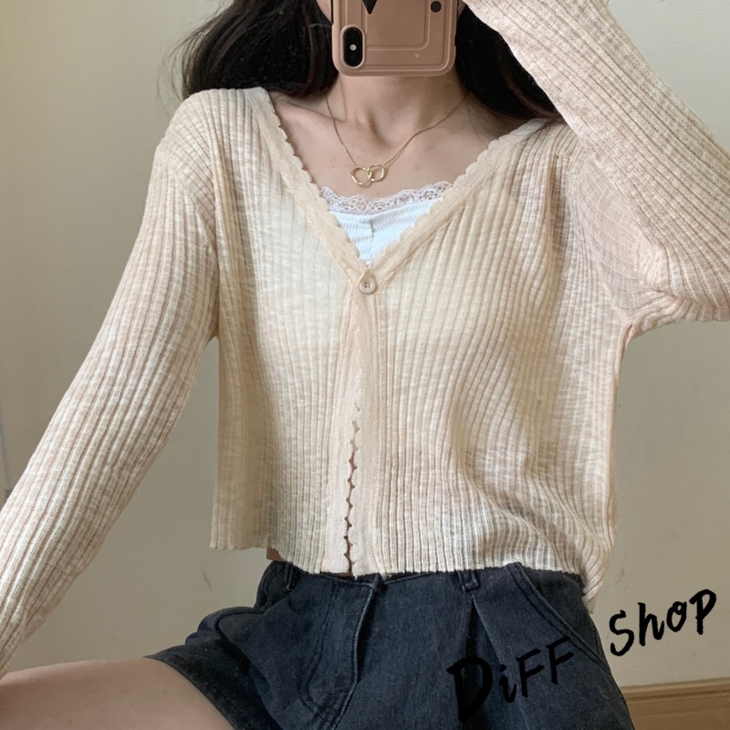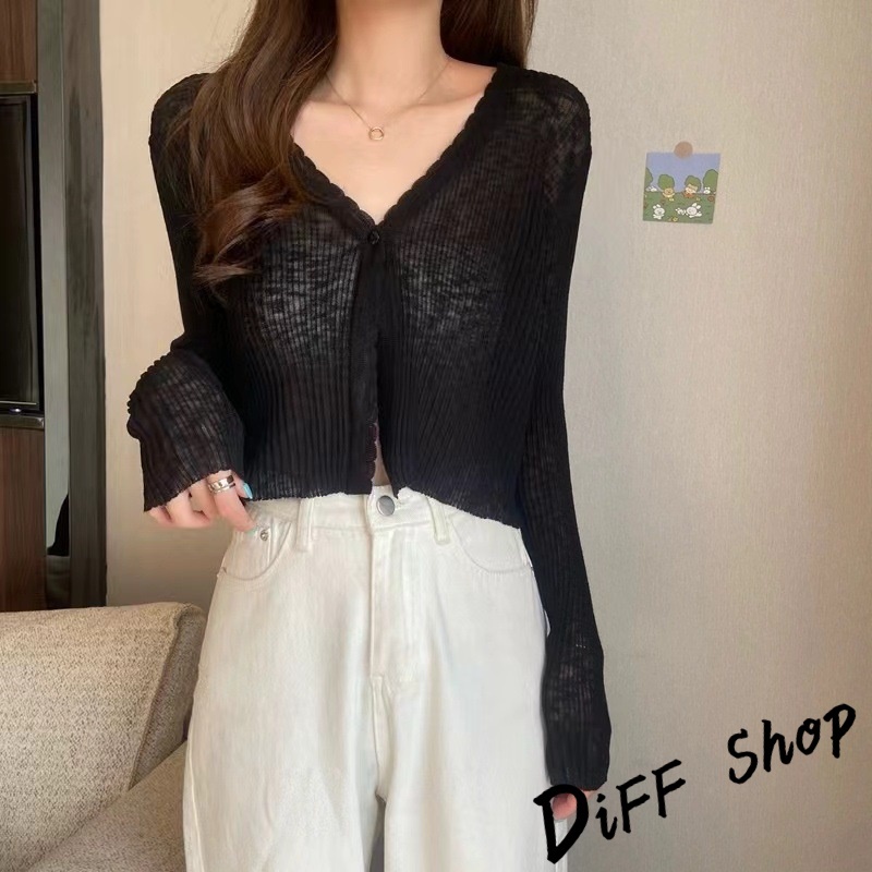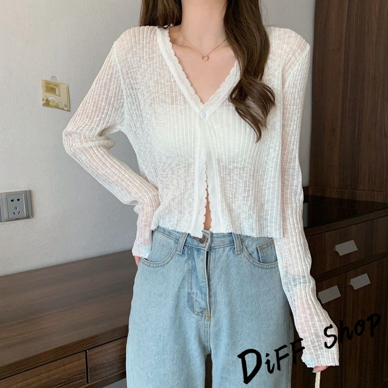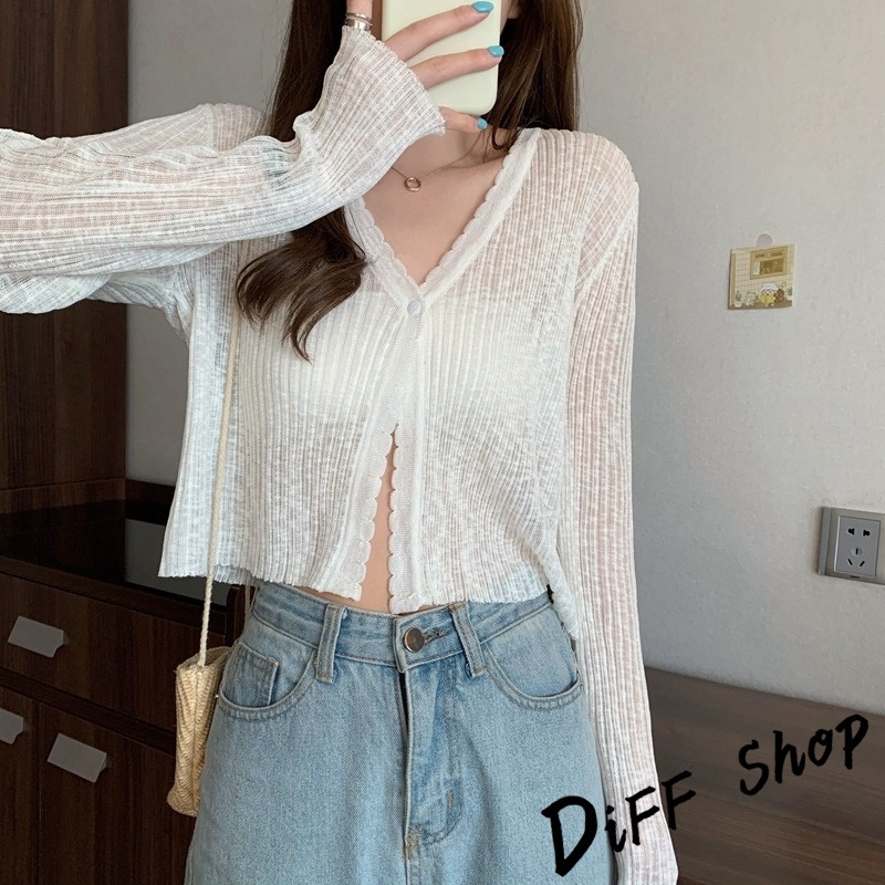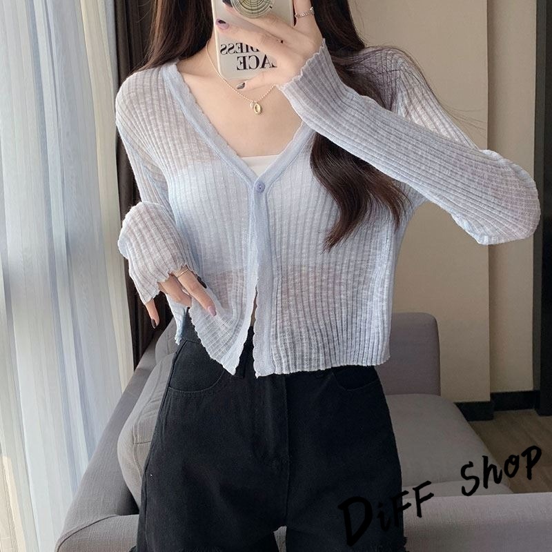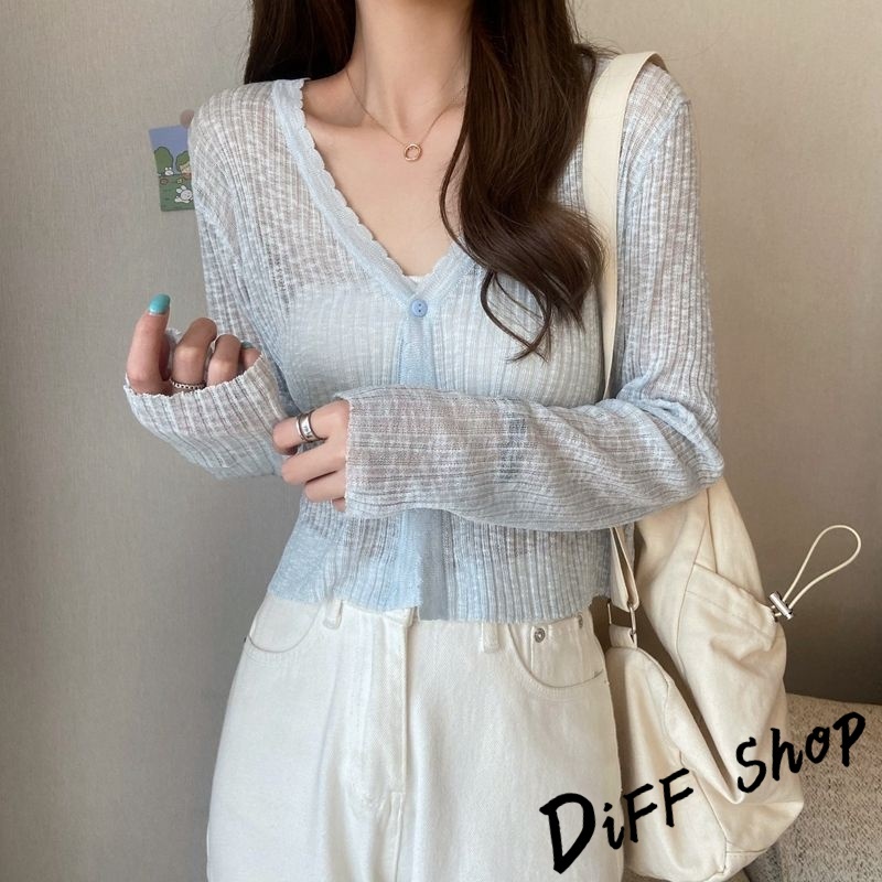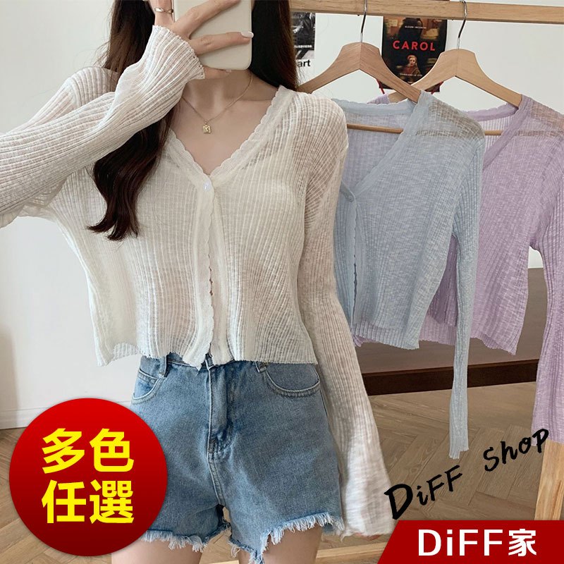 【DIFF】韓版薄款V領冰絲針織防曬外套 上衣 女裝 衣服 外套 長袖上衣 短版外套 針織外套 針織上衣【J340】【J340】藍色|【J340】黑色|【J340】白色|【J340】紫色|【J340】杏色DiFF shop