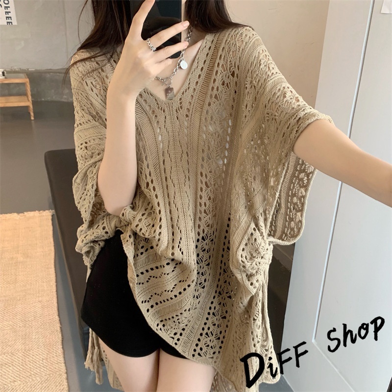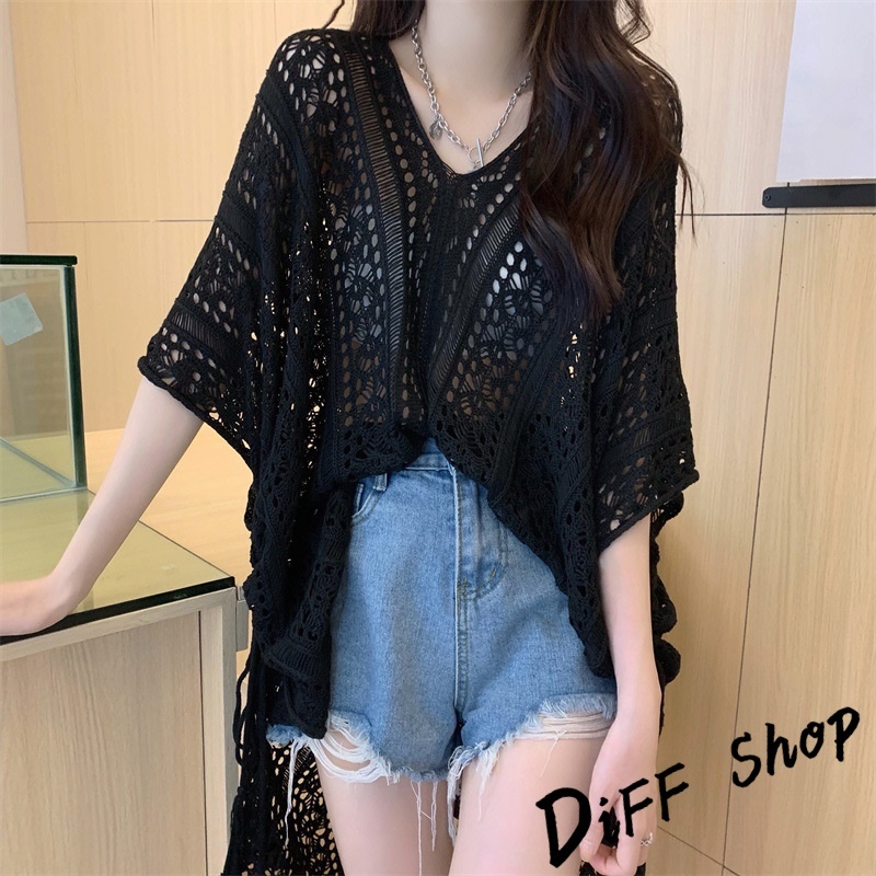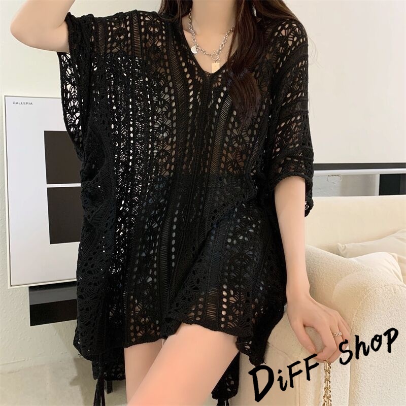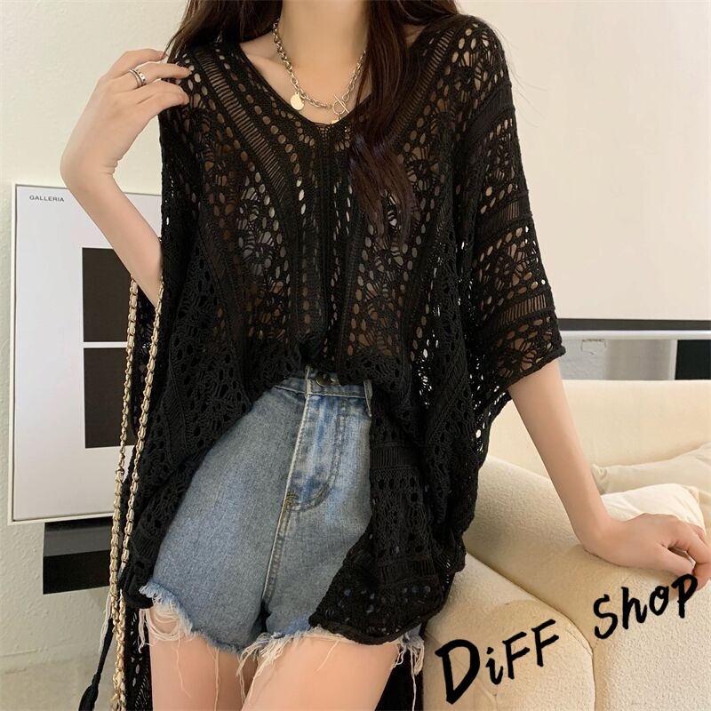【DIFF】韓版飄溢露肩簍空針織短袖上衣 針織上衣 顯瘦上衣 衣服 夏天女裝 短板上衣 短版t恤【T540】【T540】卡其|【T540】墨綠|【T540】黑色|【T540】白色T-shirtsDiFF shop